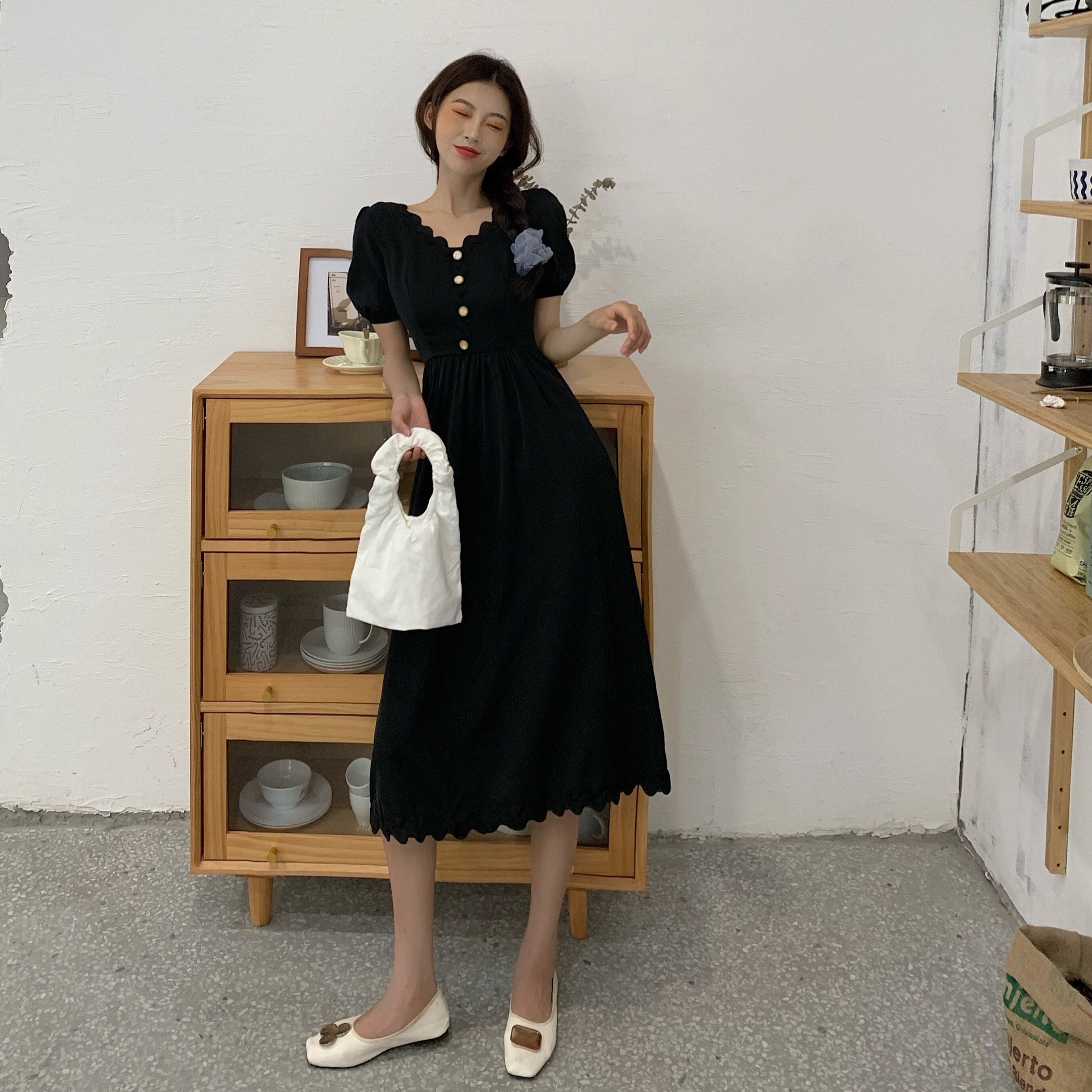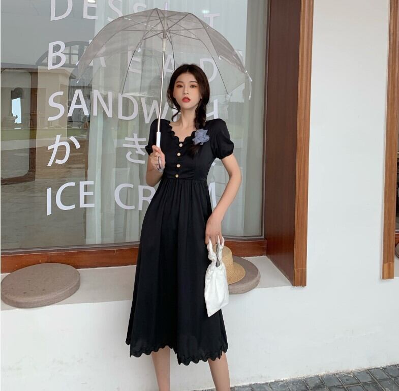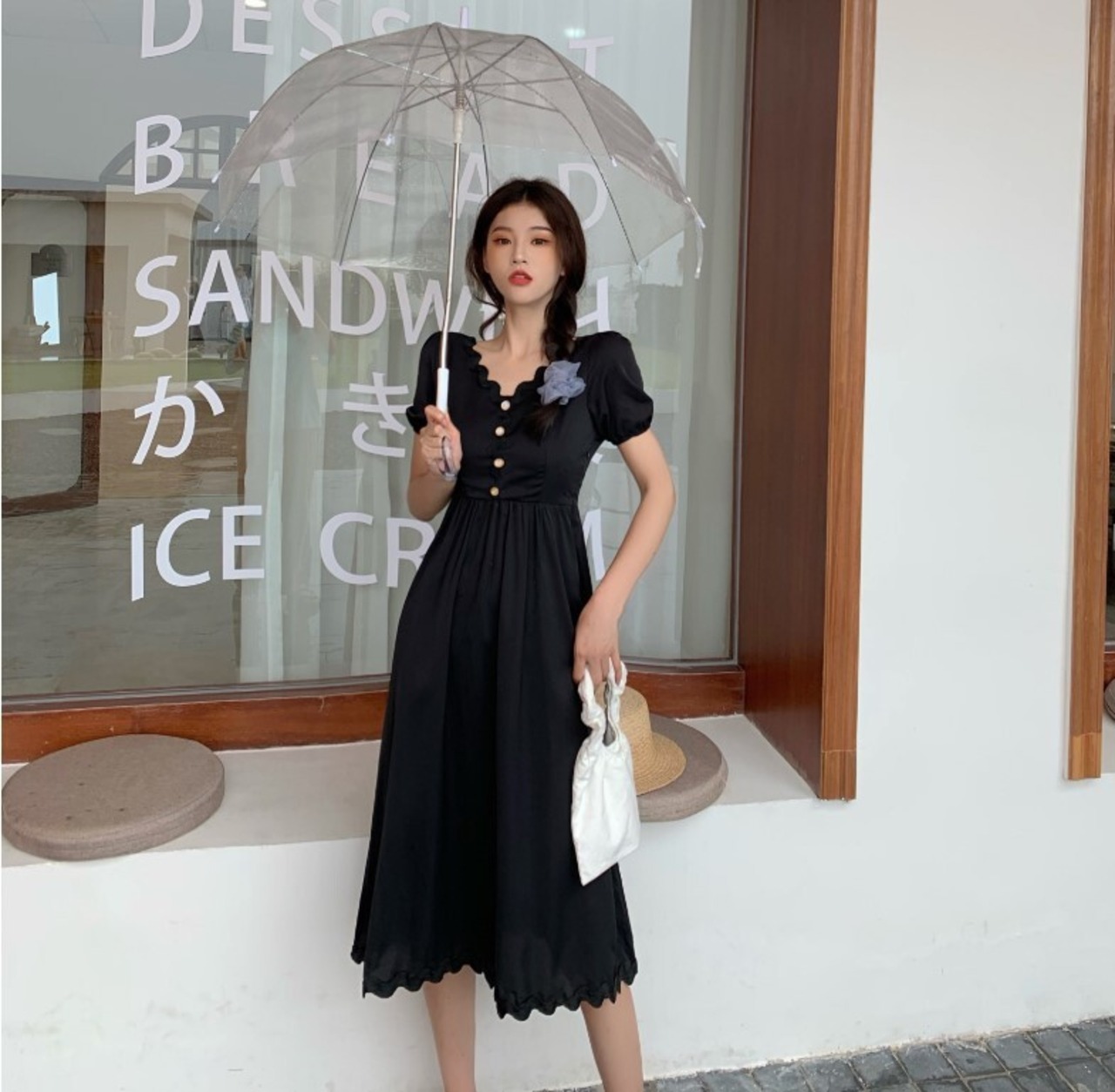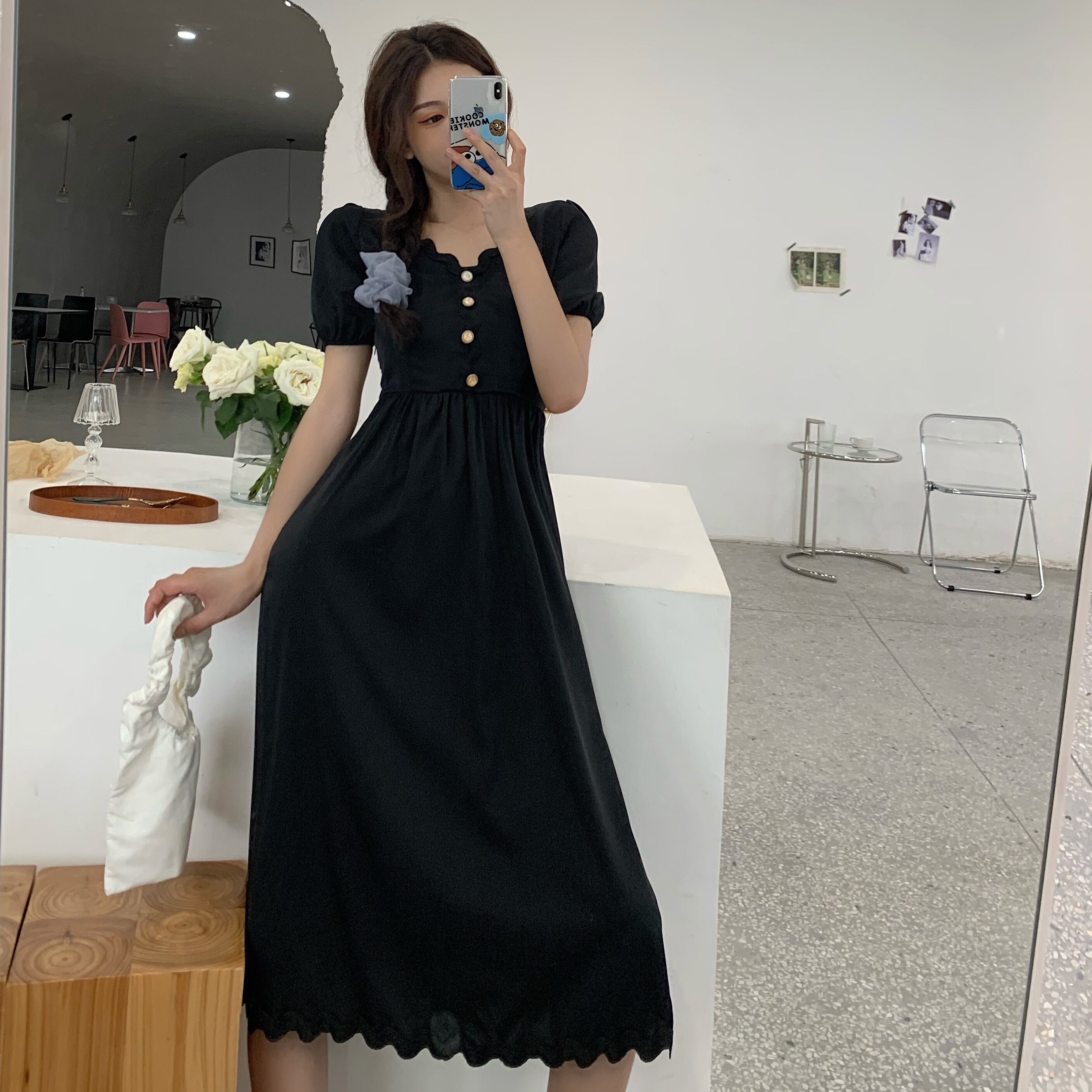 ファットシスターmmフレンチレトロスリミングベリードレス女性夏チャオキシアン気質膝丈黒ロングスカートXL ブラック TB2-10 TB2-1098280121519