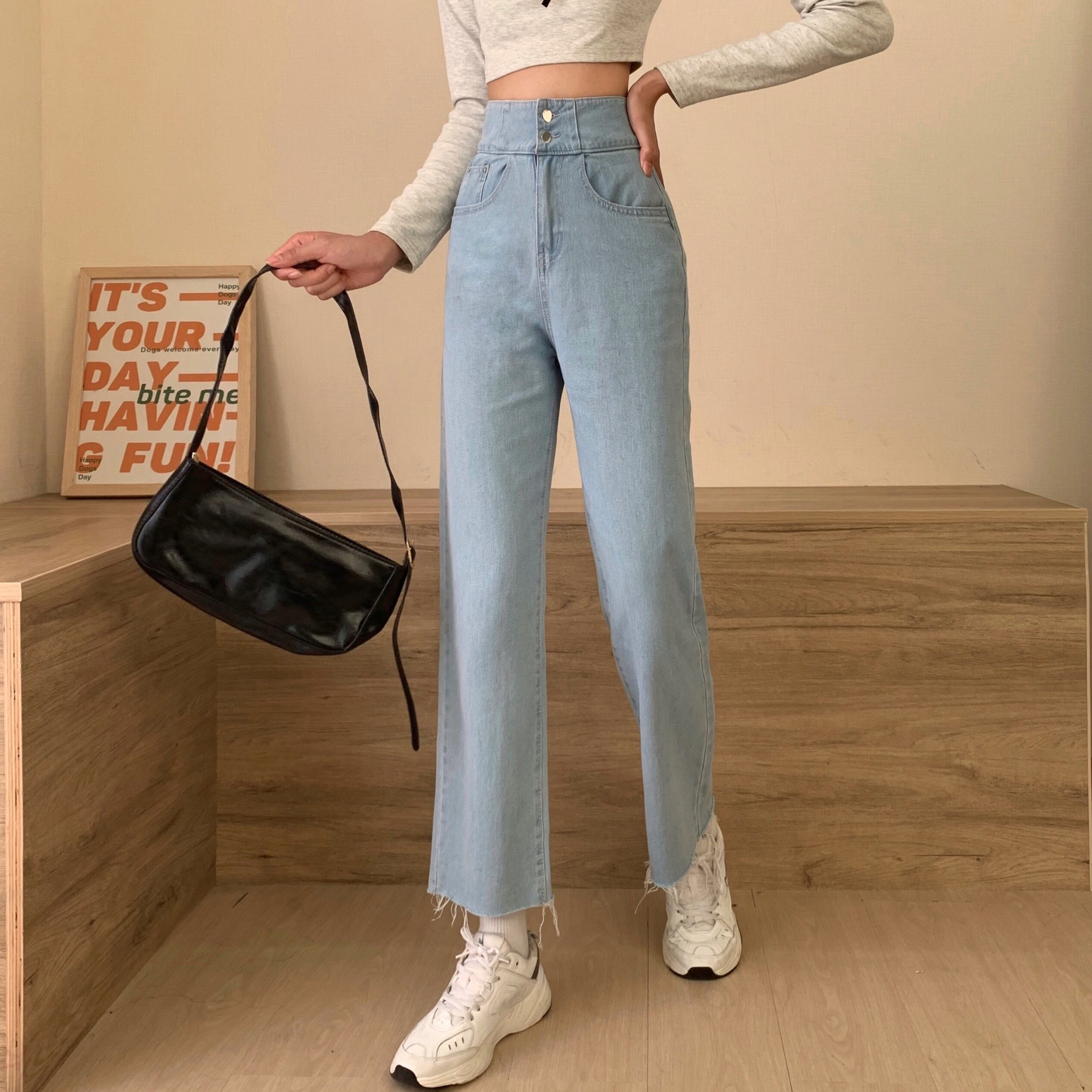 レトロな明るい色のストレートジーンズの女性2021年の新しい春と夏の薄いセクションのドレープは薄いルーズハイウエストワイドレッグパンツです ハイウェスト レッド スプリング 春物 サマー 夏物 ワイドパンツ TB2 TB290390540105