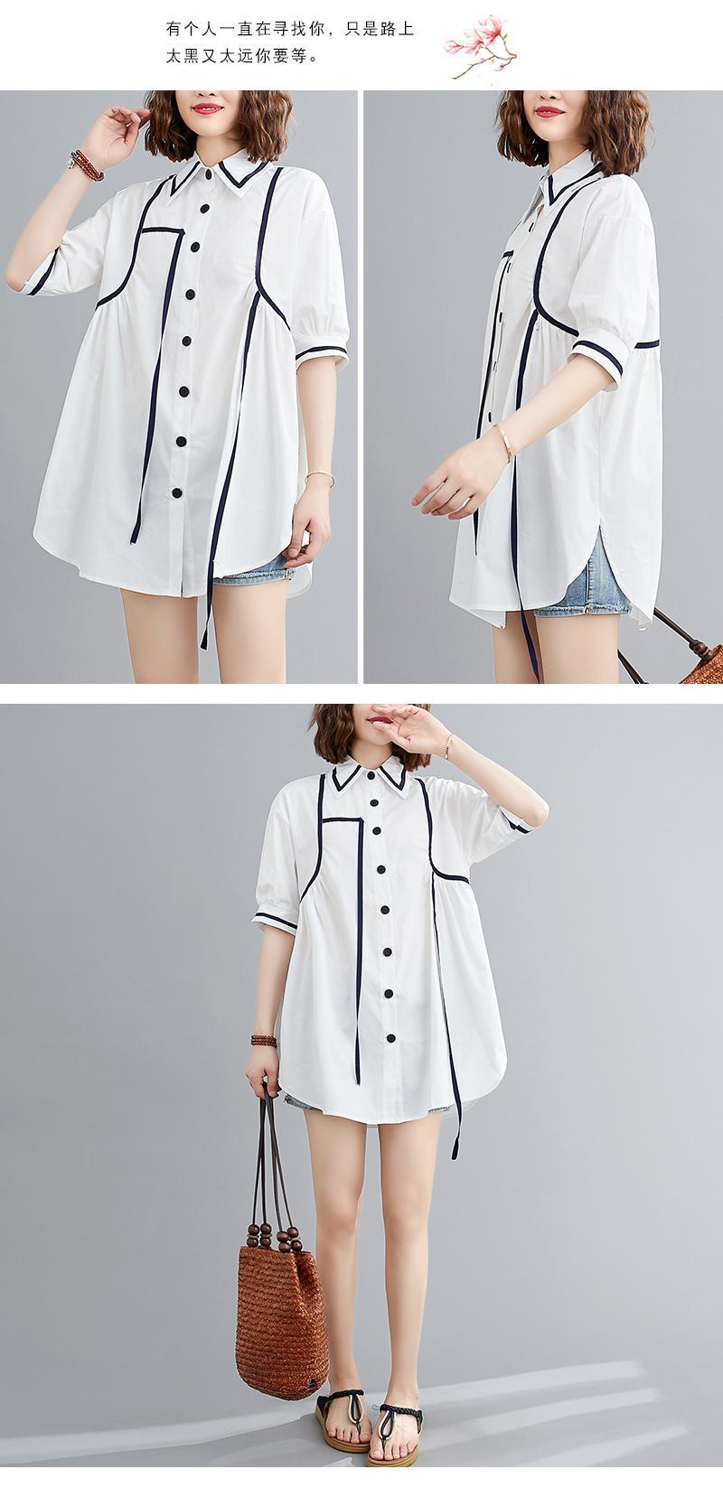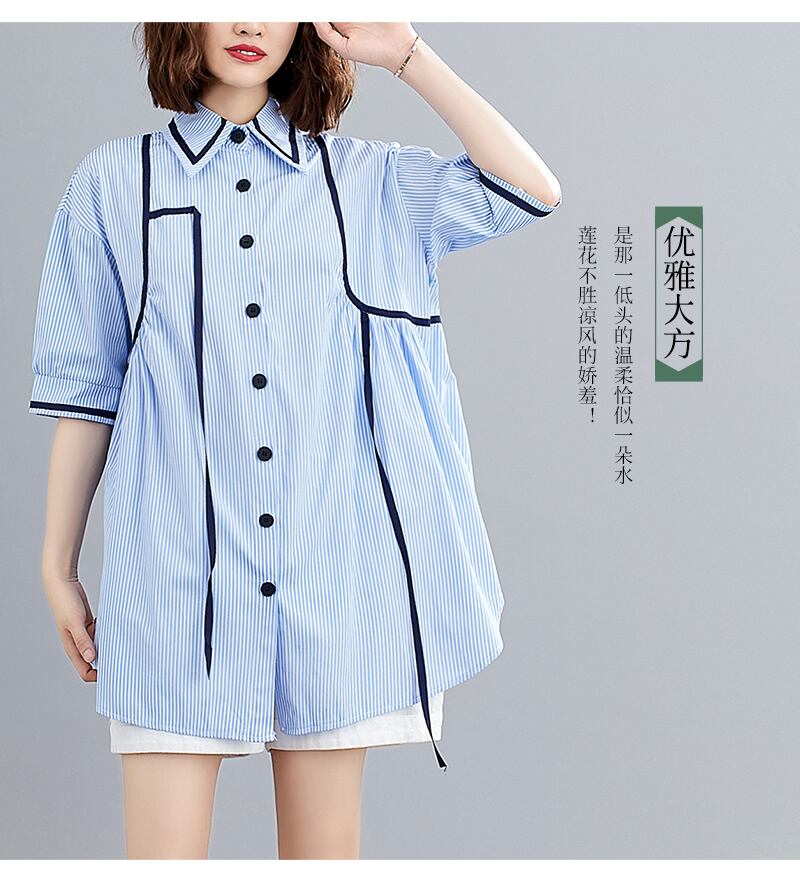 文学プラスサイズ縦縞ドレス女性2021年夏新デザインセンスリボンステッチ太い姉妹シャツスカート 大きめサイズ サマー 夏物 ストライプ TB2-288222025383