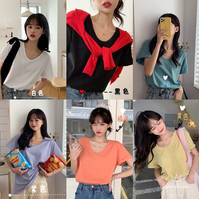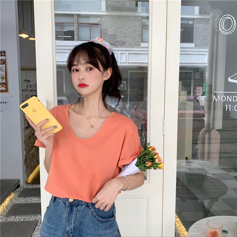 2021年春夏新作ルーズワイルドネットレッドUネックウエスタンシックベーシック無地ベース半袖Tシャツトップス スプリング 春物 サマー 夏物 ソリッドカラー TB2 TB269084840080