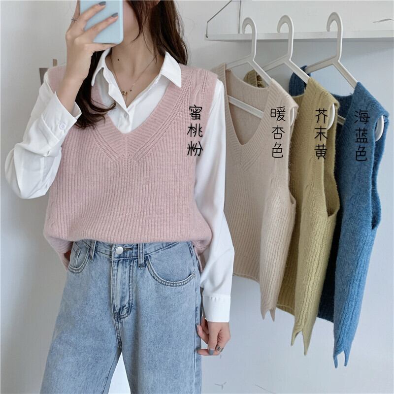 2021年春の怠惰なVネックノースリーブセーターベストオールマッチベストベストアウターセーター女性の新バージョン スプリング 春物 TB2 TB239798821868