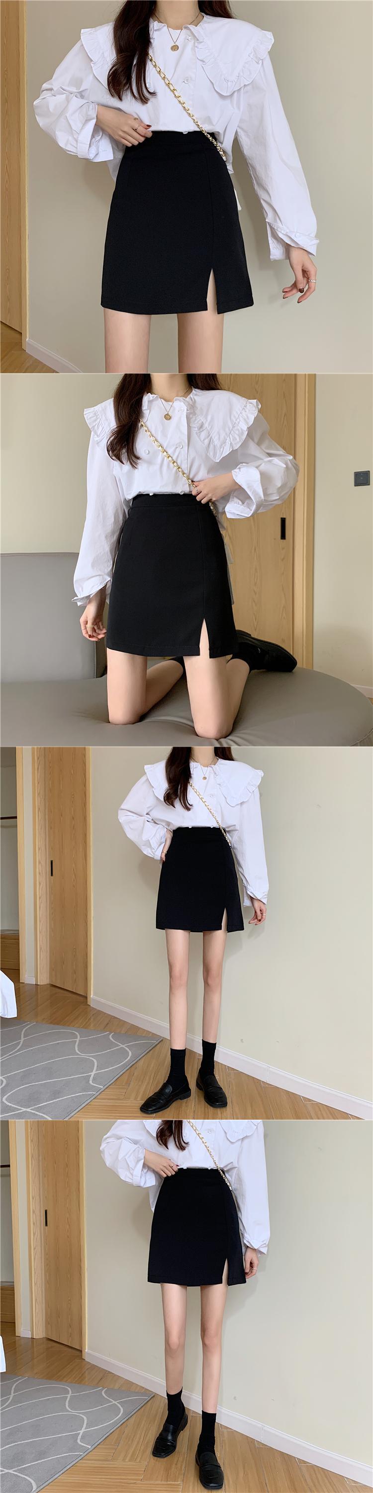 シックな気質のAラインスカートのバージョン女性の夏の薄いデザインのスリムなスリットショートバッグヒップスカートリトルブラックドレス サマー 夏物 TB2 TB266677111441