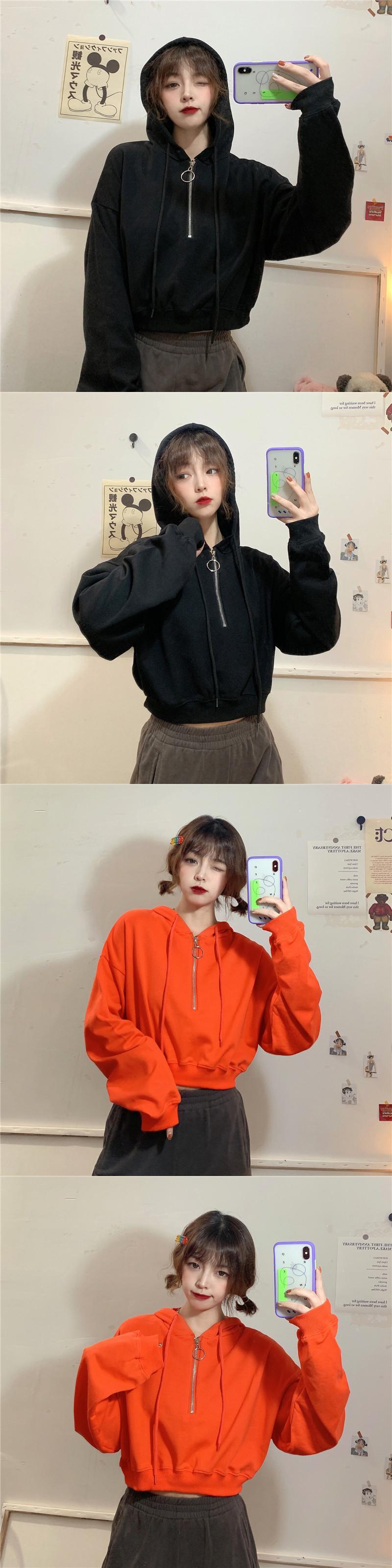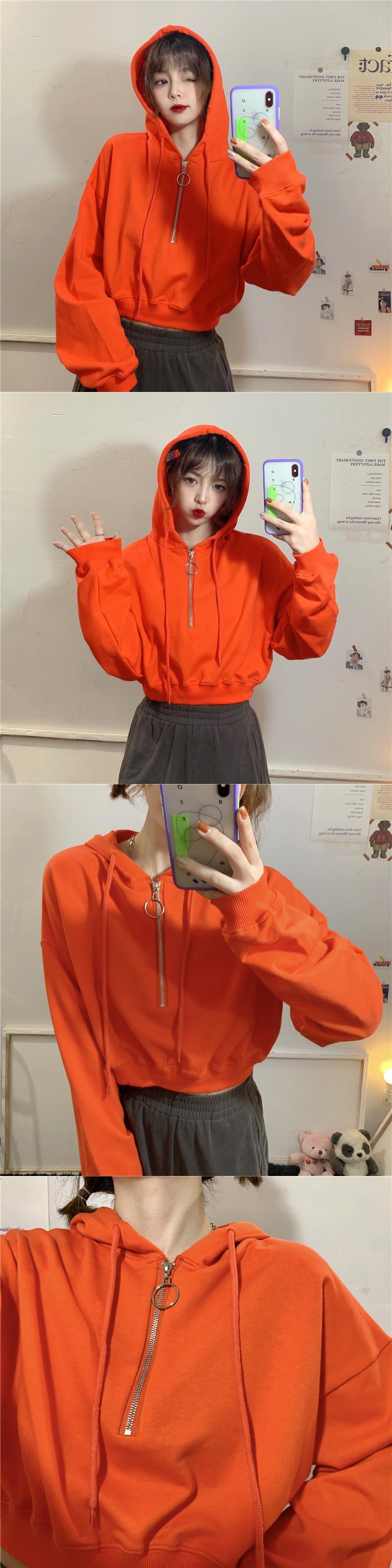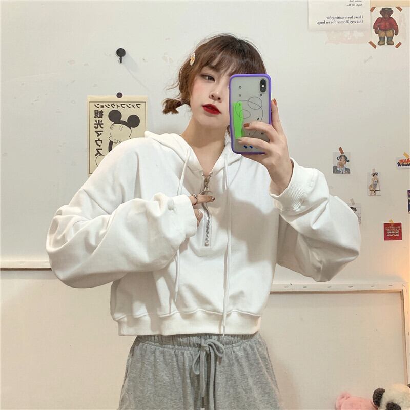 ハーフジッパーフード付きホワイトショートセーター女性スモールスタイルルーズレイジースタイルハイウエストクロップトップ春秋 ハイウェスト スプリング 春物 オータム 秋物 TB2 TB211402364802