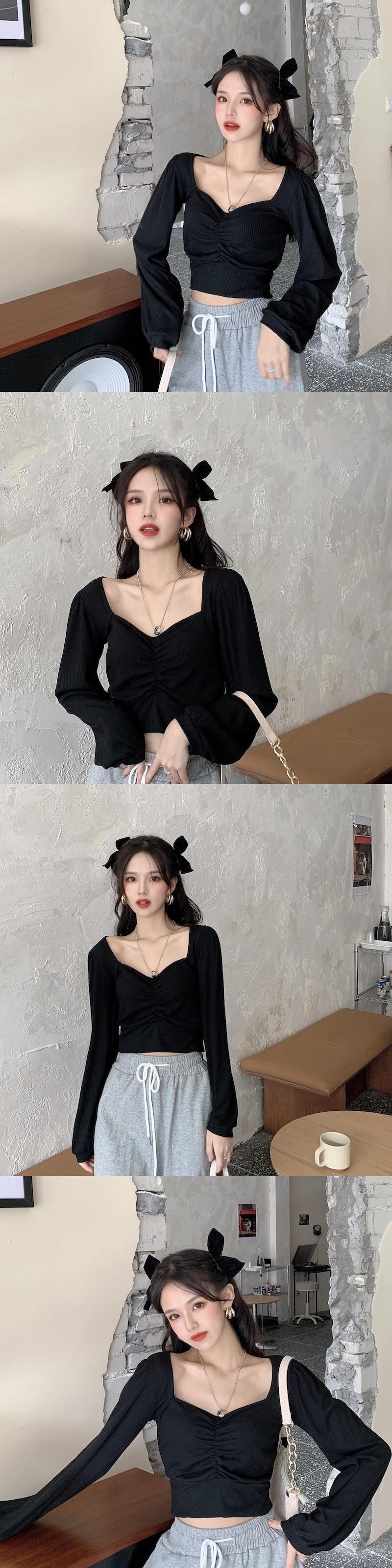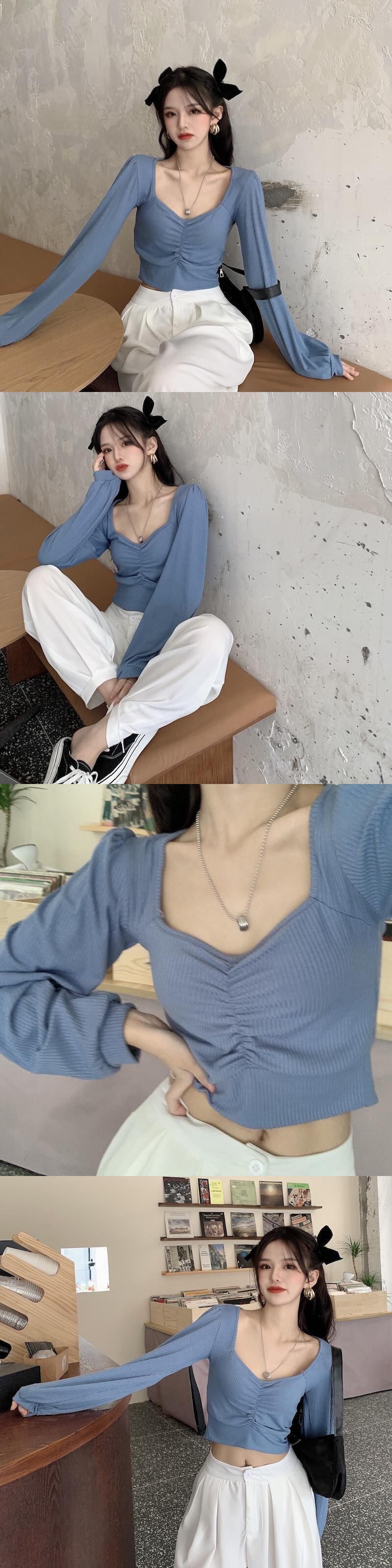 スクエアネックバブル長袖ボトミングシャツレディース春スリムボディタイツデザインセンスワイルドショート2021新作 ロング スプリング 春物 ストッキング ソックス スクウェア TB2 TB253171692854