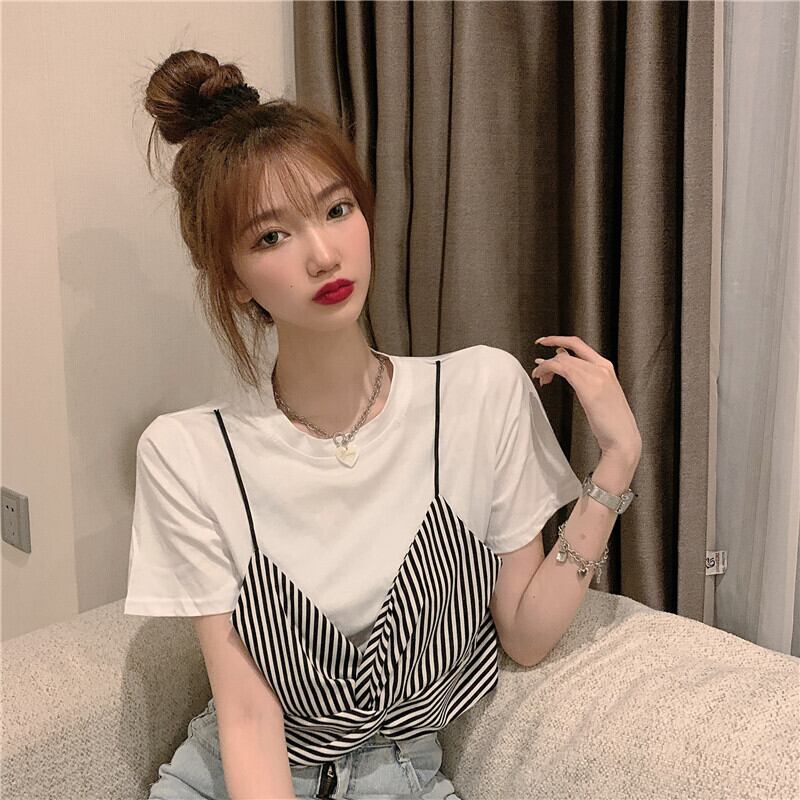 2021年半袖スーパー服ニッチな陰謀デザインセンスフェイクツーピース半袖Tシャツレディースファッション夏 サマー 夏物 TB2 TB232730020411
