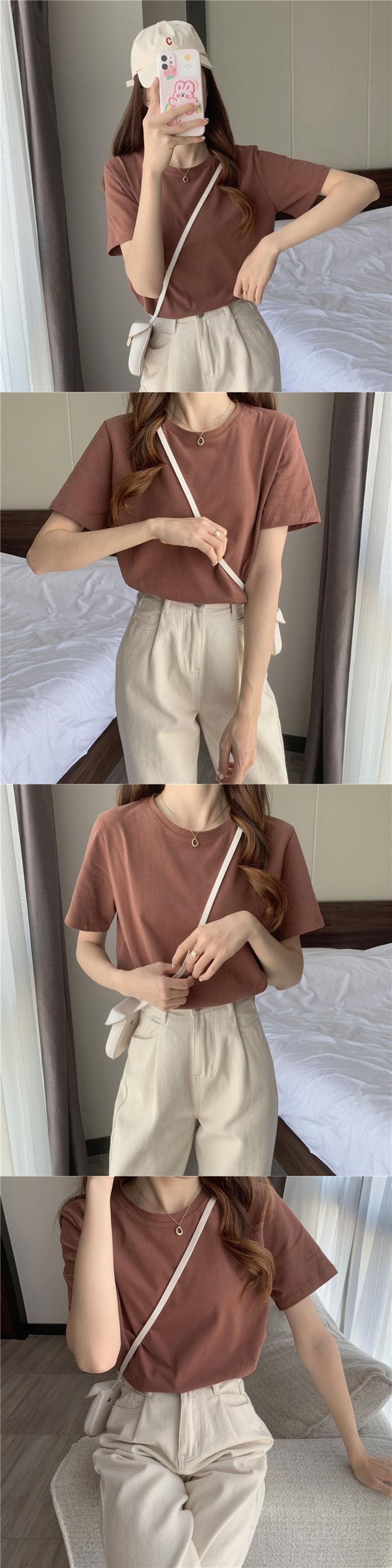 新しい2021ベーシックラウンドネックコーヒーカラーショルダー半袖Tシャツ女性夏ルーズ半袖トップボトミングシャツのバージョン サマー 夏物 Oネック TB2 TB222331563560