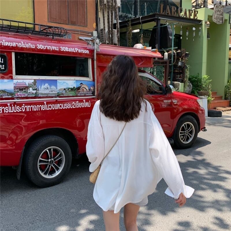 白いシャツの女性2021年新しいシフォン長袖シャツルーズ薄い日焼け止めカーディガンレトロ香港フレーバートップ ロング ホワイト TB2 TB279000403389