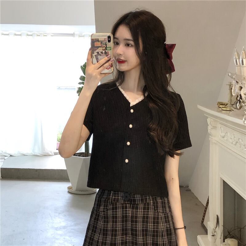 レースエッジ気質ステッチ半袖薄夏優しいニットカーディガンジャケットレディースショート薄Vネックトップス サマー 夏物 TB2 TB238482817678