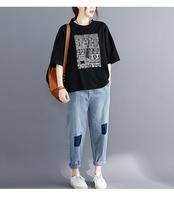ラージサイズファットmmルーズ5点スリーブプリントTシャツレディース薄めバージョンの裾スリットトップ2020年夏新作スタイル 大きめサイズ サマー 夏物 TB2-8 TB2-8587490227