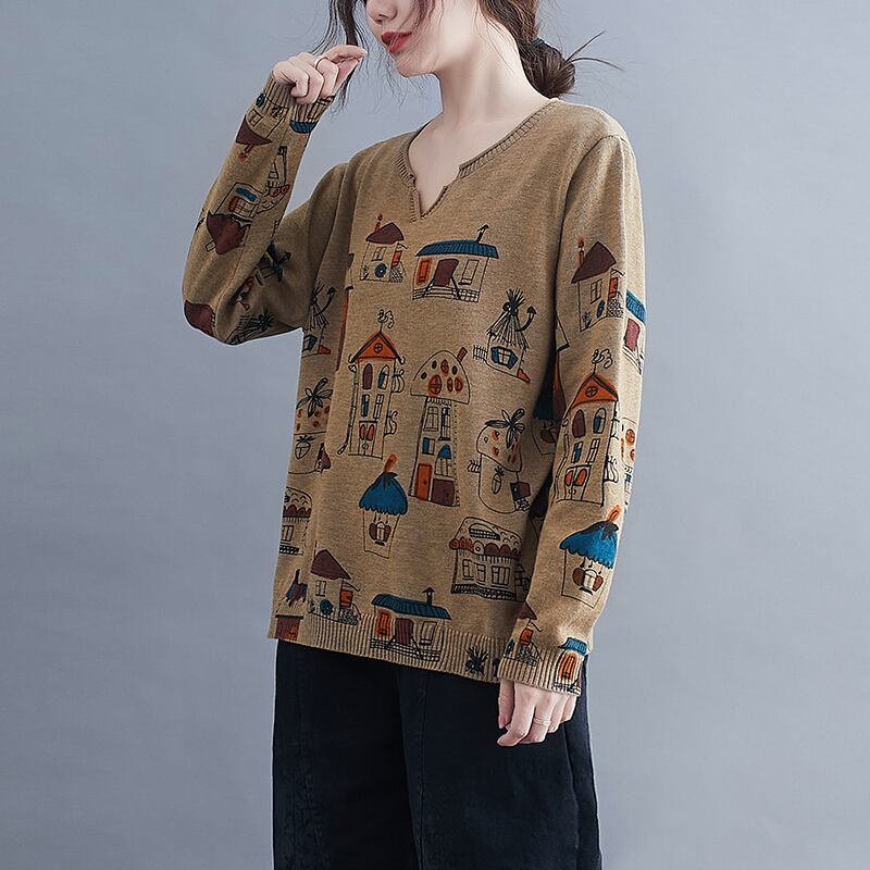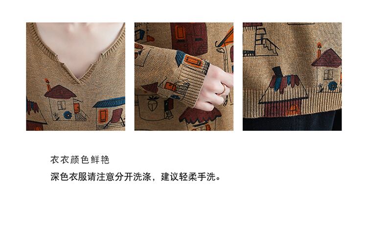 長袖セーターの女性は2021年春に新しいルーズラージサイズの漫画の年齢を減らして薄くするVネックジャカードセーター ロング 大きめサイズ スプリング 春物 TB2-8 TB2-867776108937