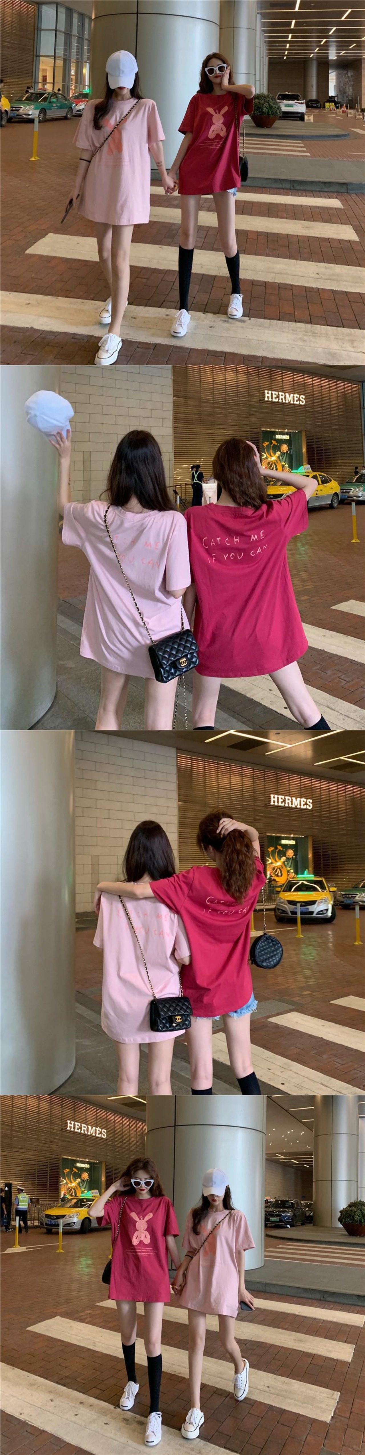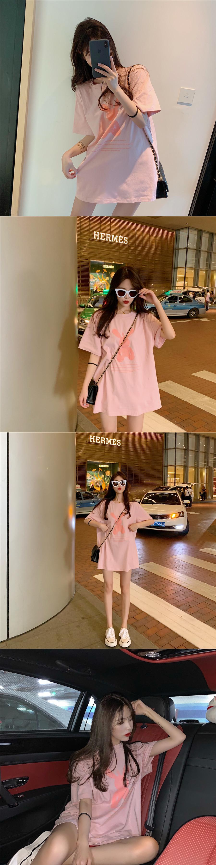ピンクのミドル丈半袖Tシャツレディース春秋バージョンの新しいルーズファッションウエスタンスタイルの漫画プリントトップレディースイン スプリング 春物 オータム 秋物 TB2 TB284043038859