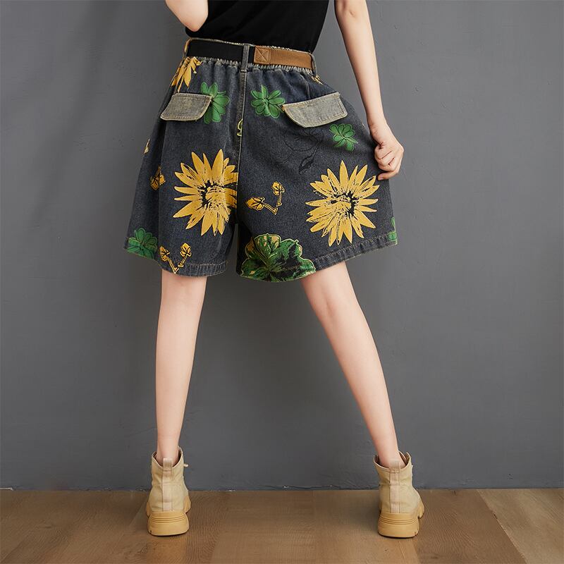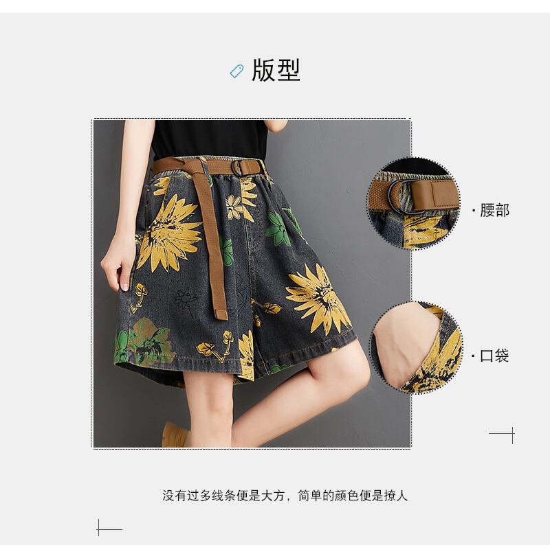 デニムショートパンツプラスサイズ女性脂肪mmサマールーズバージョンのハイウエストaラインフラワープリントワイドレッグ5点パンツは薄かった ハイウェスト 大きめサイズ 夏物 ショーツ ブルマー フラワーデザイン TB2-8 TB2-866386468137