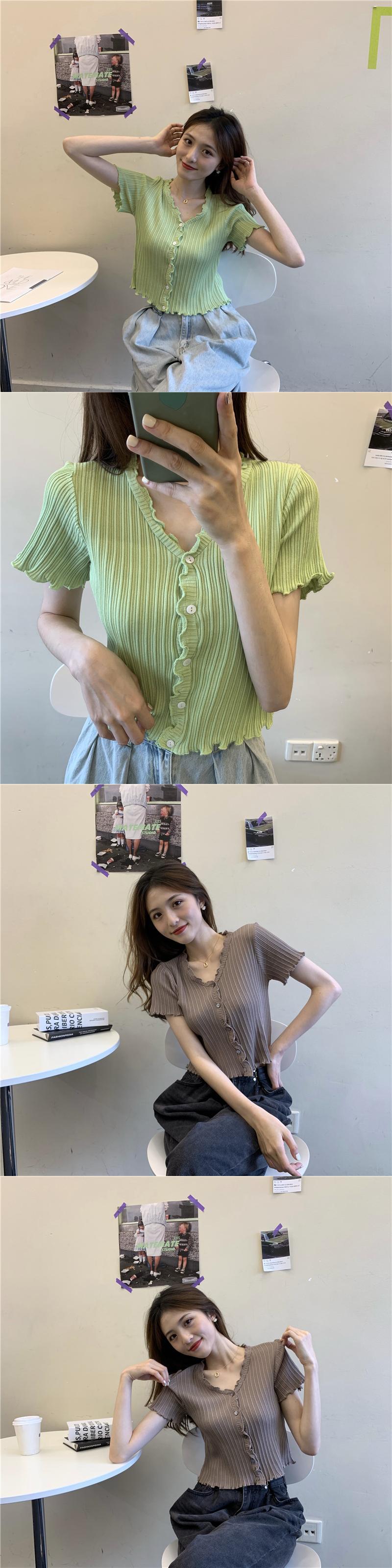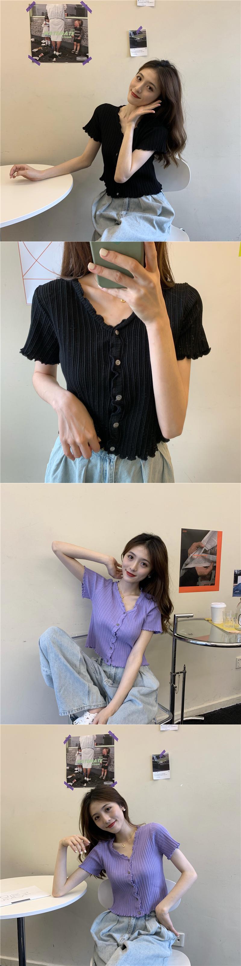 Vネック半袖Tシャツレディース2021年夏新作フレンチデザインセンスニッチスリムスリミングショートハイウエストアッパードレス サマー 夏物 TB2 TB273805677168