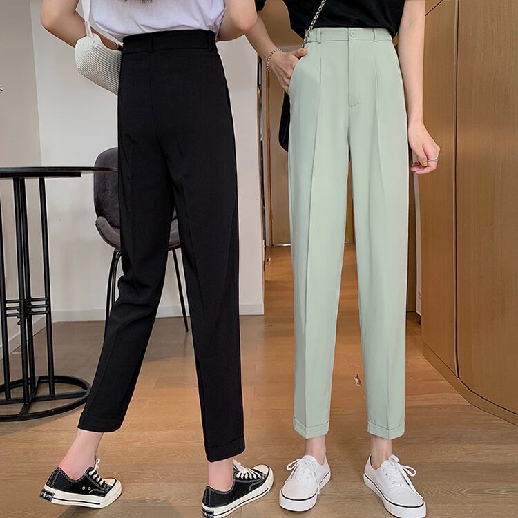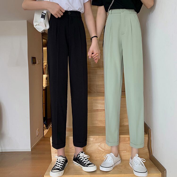 パンツ女性の夏の薄いセクションルーズで薄いストレート小さな黒いテクスチャスーツパンツドレープハイウエストクロップドパンツ ハイウェスト ブラック サマー 夏物 TB2 TB273168449750
