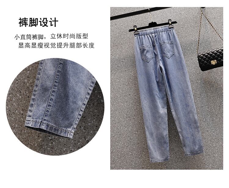 ファットmmプラスサイズのレディースパンツ夏のルーズで用途の広いハイウエストドローストリング9ポイントパンツは薄いハーランテンセルの薄いジーンズでした 大きめサイズ サマー 夏物 TB2-8 TB2-846140112059