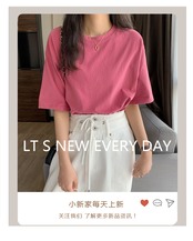 スーパーファイヤーTシャツ半袖2021年新作女性夏ベーシックモデル無地ルーズヘッジラウンドネックラズベリーパウダートップ サマー 夏物 Oネック ソリッドカラー TB2 TB224424495404