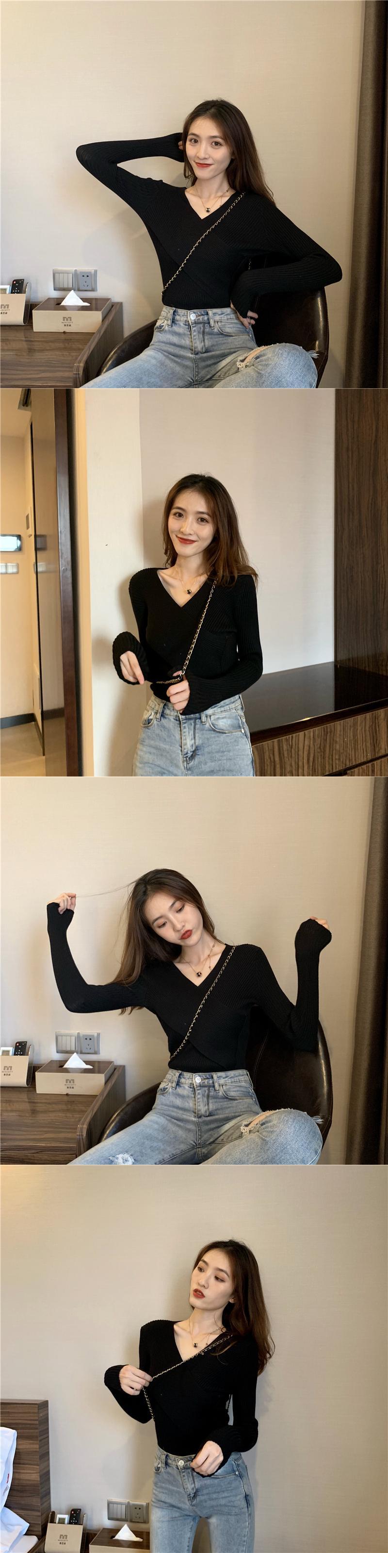 ミントグリーントップレディース2021年春の新しいVネックストラップレスプルオーバーセーターボトミングシャツ長袖、潮の干満 ロング スプリング 春物 TB2 TB223281376580