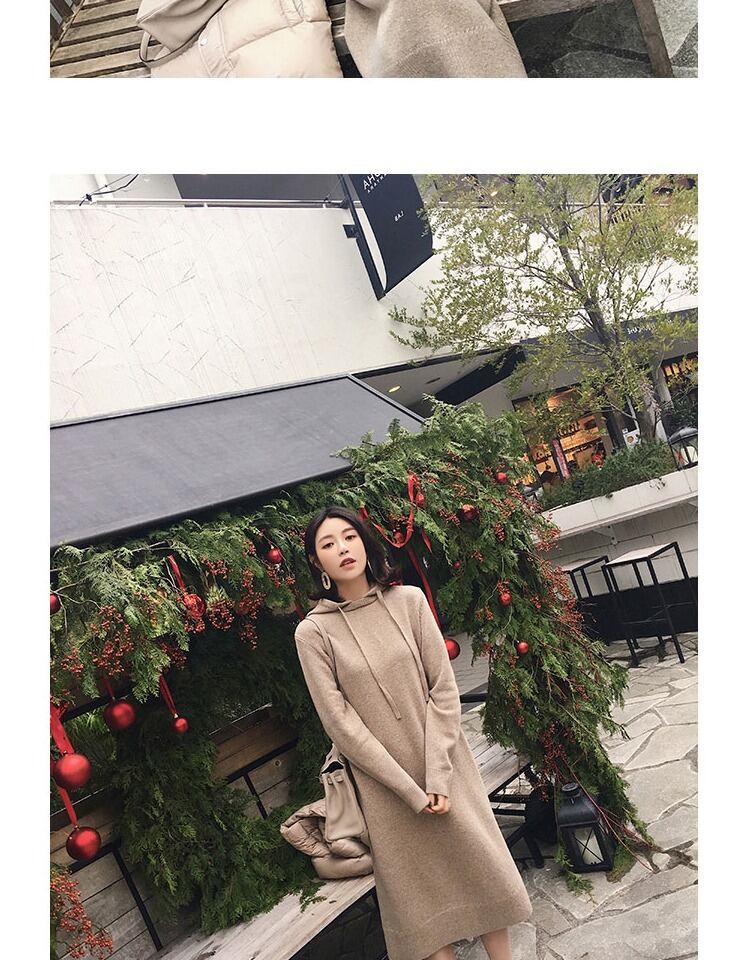 2021年秋冬長袖ボトミングスカート膝上ロングスカートフード付きルーズセータードレスレトロニットミドル丈ドレス オータム 秋物 ウィンター 冬物 TB2-3 TB2-357714951228