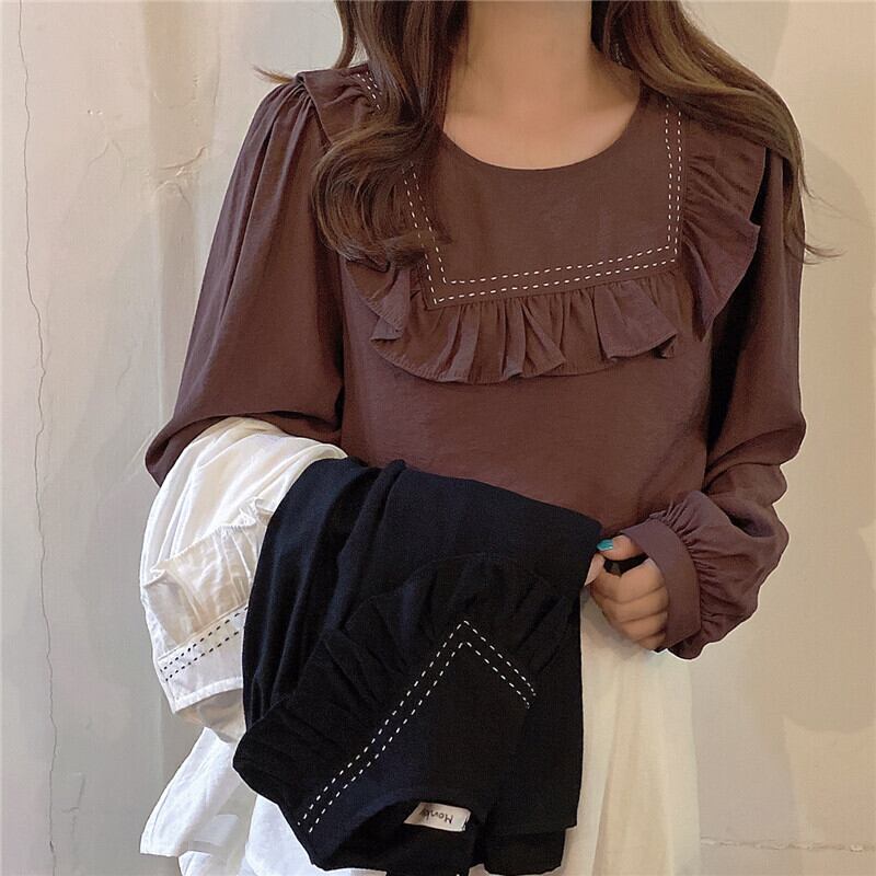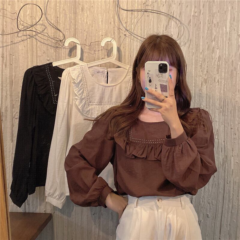 レトロな木製の耳2021女性のデザインセンスニッチシャツ春のスタイル気質新しいファッション白いシャツ長袖シャツ ロング ホワイト スプリング 春物 TB2-6 TB2-630294734568