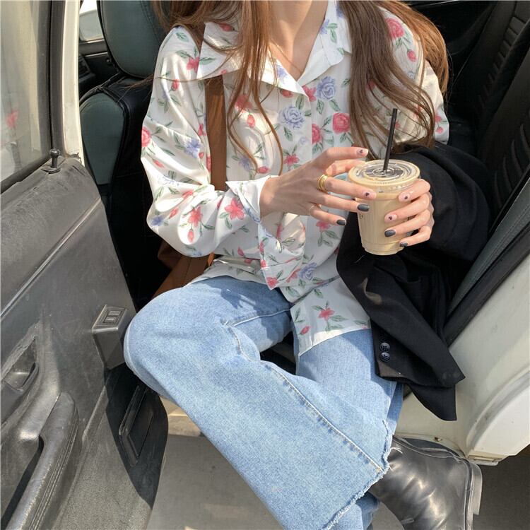 デザインフローラルシフォン長袖ブラウスニッチトップス新しい2021年春秋オールマッチシャツトレンド ロング スプリング 春物 オータム 秋物 花柄 TB2-6 TB2-632260525561