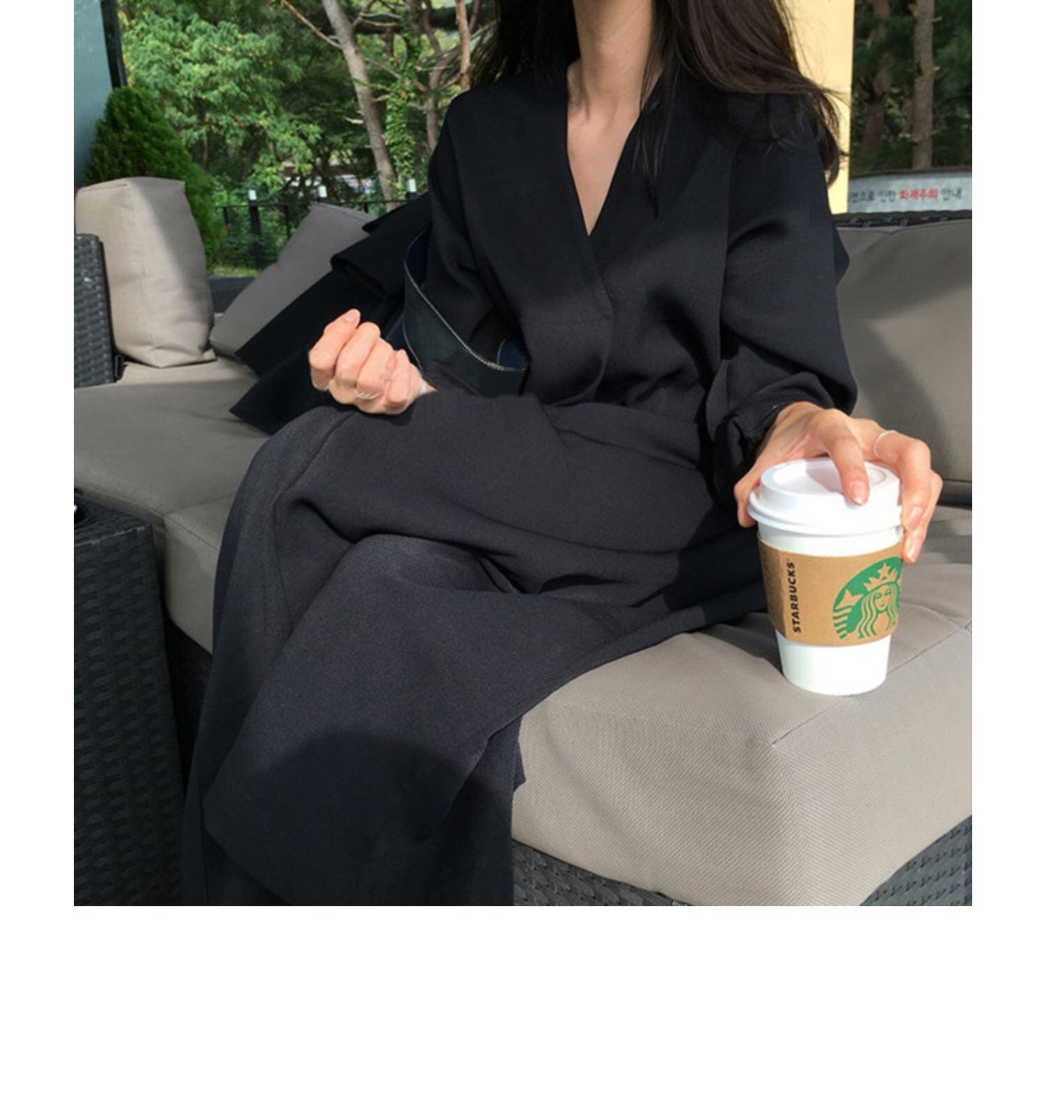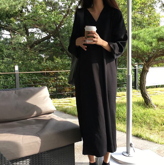 夏のシックな女性のスカートVネック長袖ルーズカジュアルスリムブラックロングスカート女性の流行のレトロなドレス サマー 夏物 TB2-3 TB2-379333305886