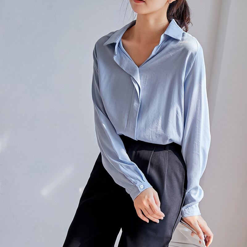 ブルー長袖スタックシャツレディースカジュアルシャツ秋のレトロルーズトップアウターの2020年新バージョン ロング オータム 秋物 TB2-3 TB2-389962569670
