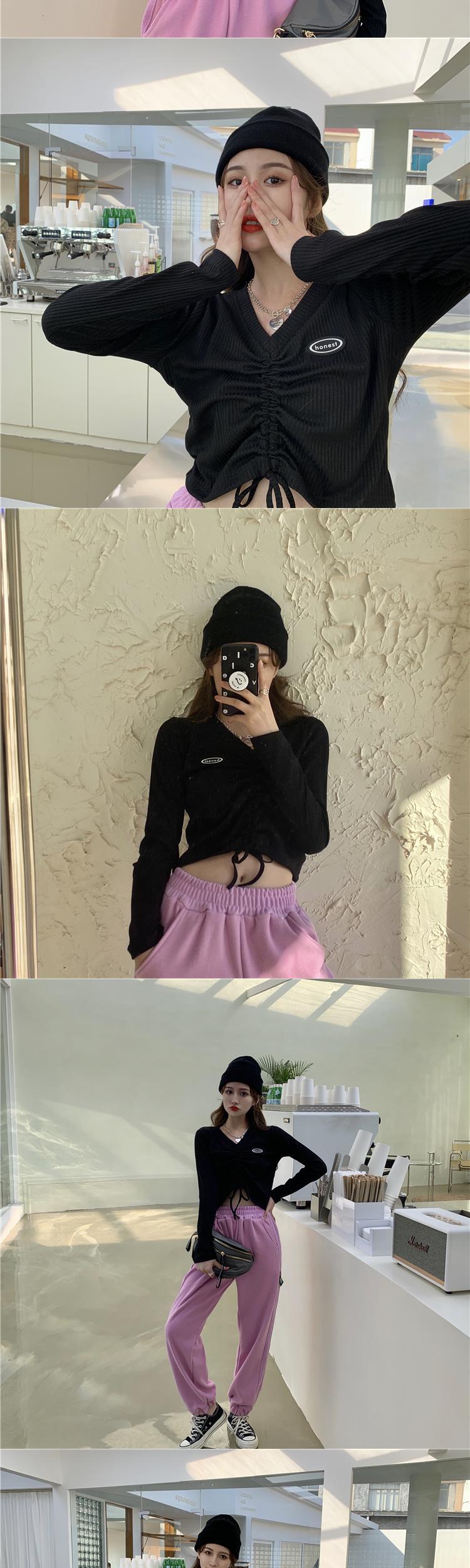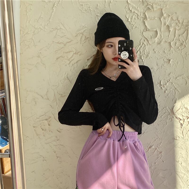 ドローストリングショートブラック長袖t2021レディースボトミングシャツタイドシャツ春新バージョンのスリムオールマッチトップス ロング スプリング 春物 TB2-6 TB2-662687378023