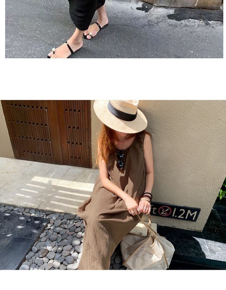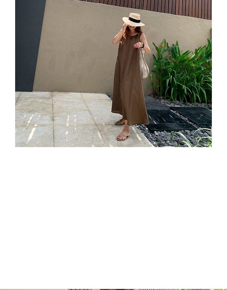 文学と芸術のバージョンレトロなルーズリネンノースリーブベストドレス女性の夏の気質は薄いレジャー休暇ロングスカートでした サマー 夏物 TB2-3 TB2-362906697279