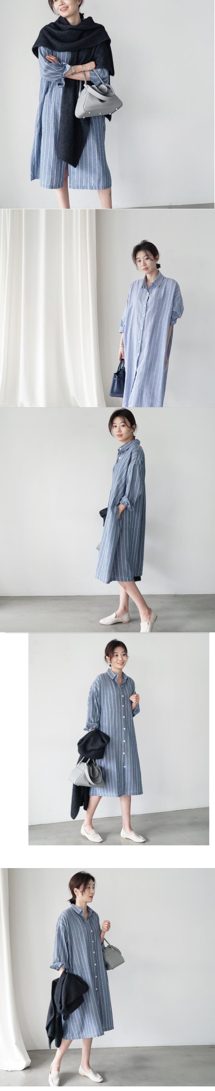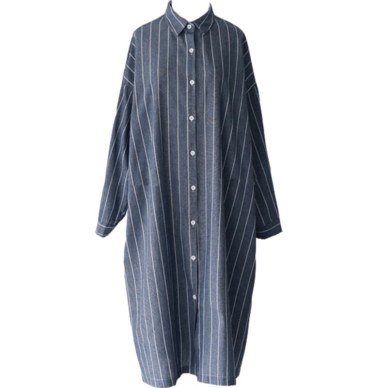 20201ロードコットンとリネンのストライプのシャツドレス女性のファッションカジュアルオーバーニーラージサイズ長袖BFラペルシャツドレス ロング 大きめサイズ TB2-3 TB2-320995723575