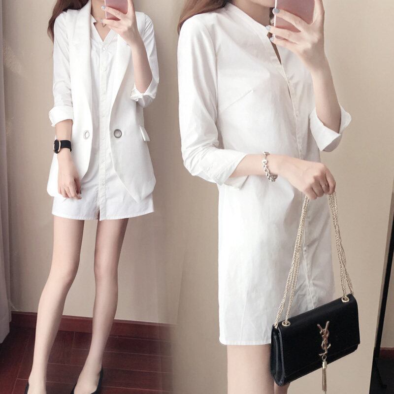 2020年春秋新作ホワイトシャツレディース長袖Vネックミドル丈コットンスリムスリムセクシーパジャマシャツ ロング スプリング 春物 オータム 秋物 TB2-3 TB2-324141211524