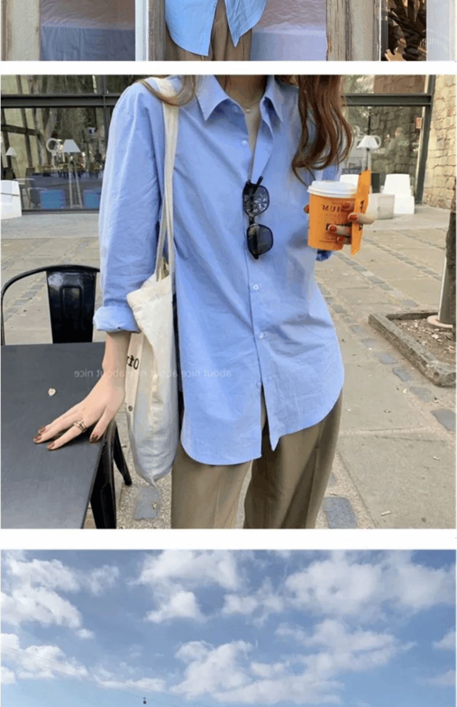 2021年新バージョンのブルーシャツの女性がオールマッチのルーズフィットシャツ、女性の秋の長袖ボトミングトップスを着用 ロング オータム 秋物 TB2-3 TB2-330034404266