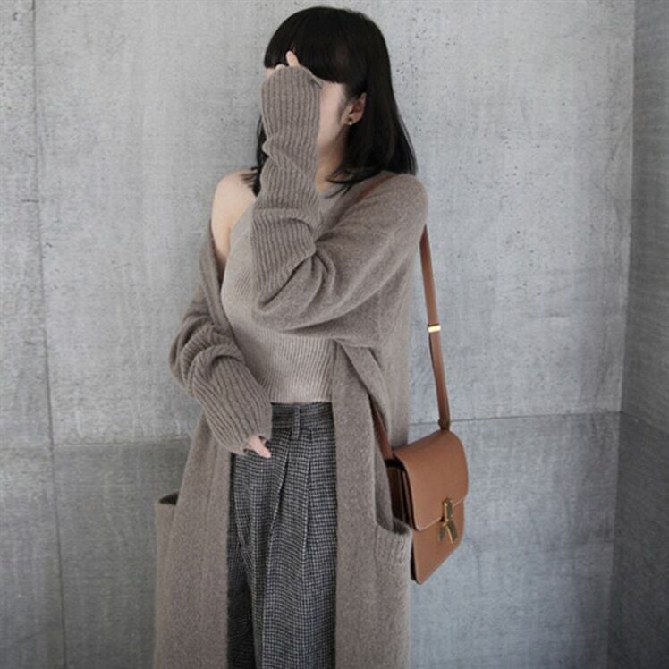 ヨーロッパとアメリカのニットジャケットカーディガンジャケット女性2021年新しいミドル丈ルーズ長袖ネットレッドセータージャケット ロング ヨーロピアン TB2-3 TB2-332971287324