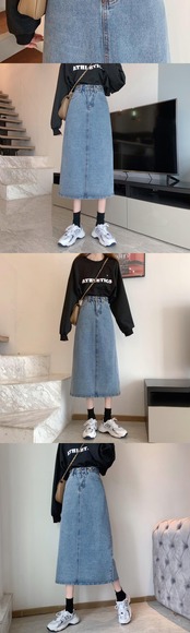 レトロブルーニューシン女性ハーフレングススカート2021ハイウエストスプリングキャラクターバージョンロングデニムスカート ハイウェスト 春物 TB2-6 TB2-683619092162