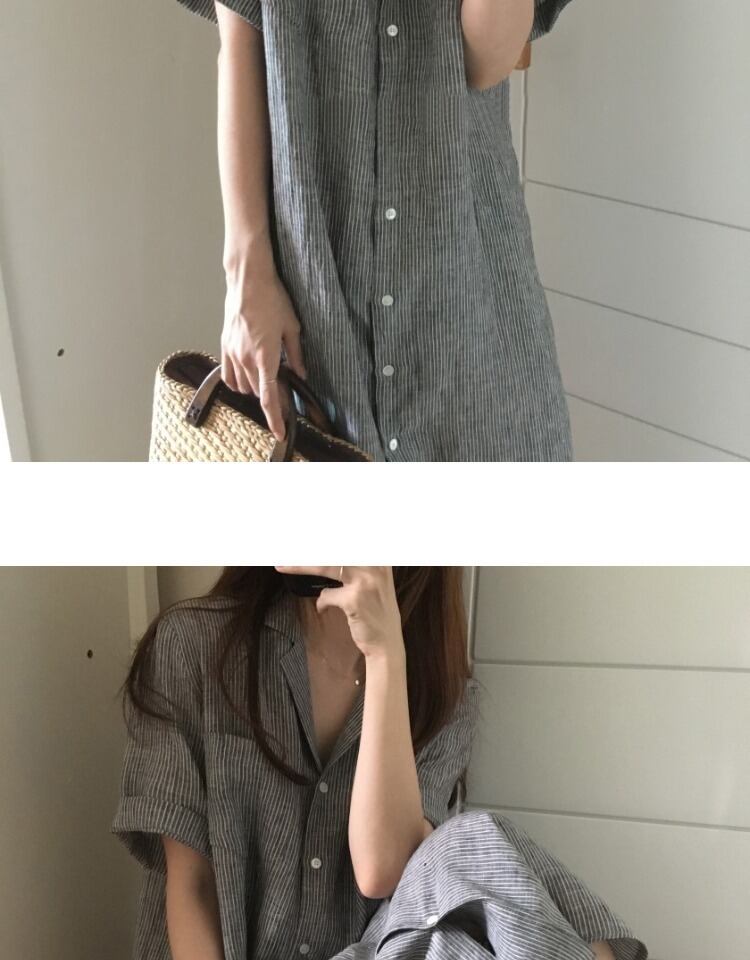 シックなストライプドレスレディースサマードレス2019新しいミドル丈Vネックシャツスカートルーズオーバーザニースカート 夏物 TB2-3 TB2-395294528232