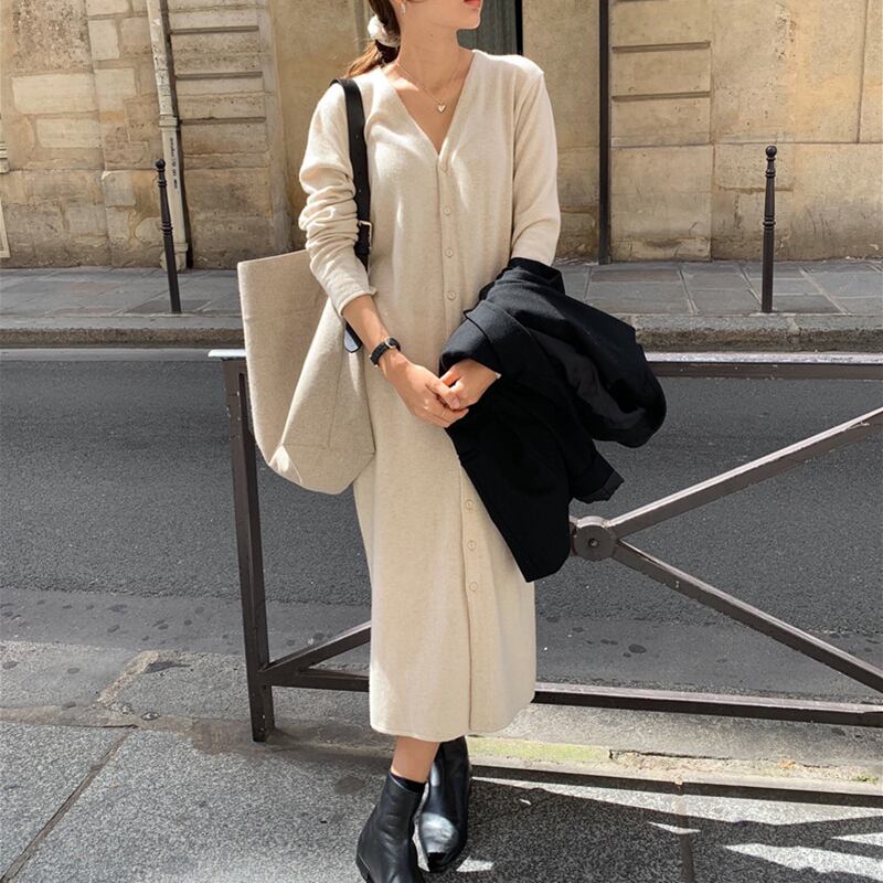 2021年春秋カーディガンレディースミドル丈オーバーザニーセーター薄手のコート無地ウールニットワンピース スプリング 春物 オータム 秋物 ソリッドカラー TB2-3 TB2-349868995378