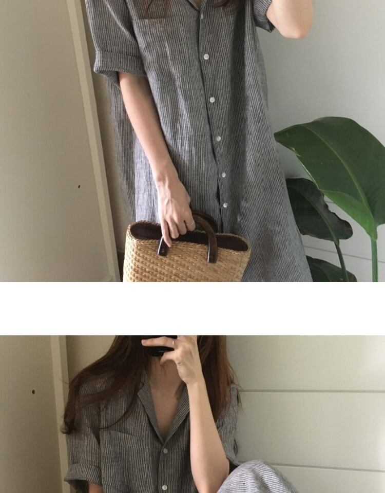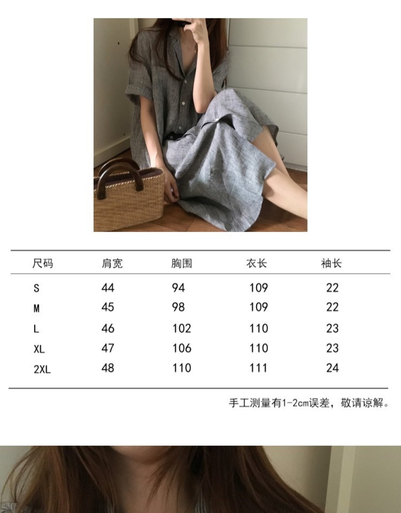 夏のファンの新しいbfストライプ半袖シャツ女性の超ロング膝上ルーズで薄い大きな綿とリネンのシャツのスカート コットン サマー 夏物 TB2-3 TB2-369470403713
