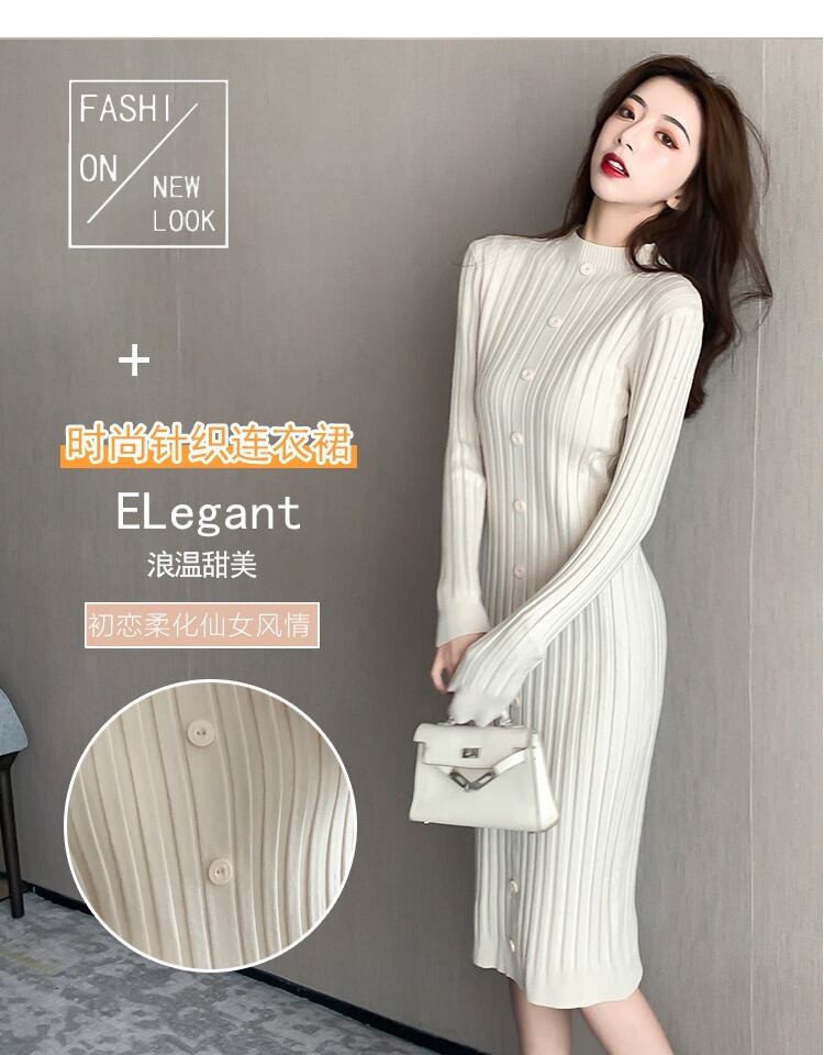 秋冬のハーフハイカラー、膝上にミドル丈のセータースカート、コート付きスリムスリミングニットボトミングワンピース オータム 秋物 ウィンター 冬物 TB2-3 TB2-37722271569
