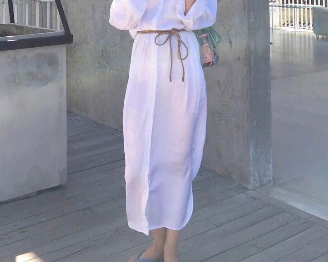 2021年夏の新しい女性のシックなスーパー妖精気質シャツドレスエレガントなレースの白いシャツロングスカート ホワイト サマー 夏物 TB2-3 TB2-346005468407