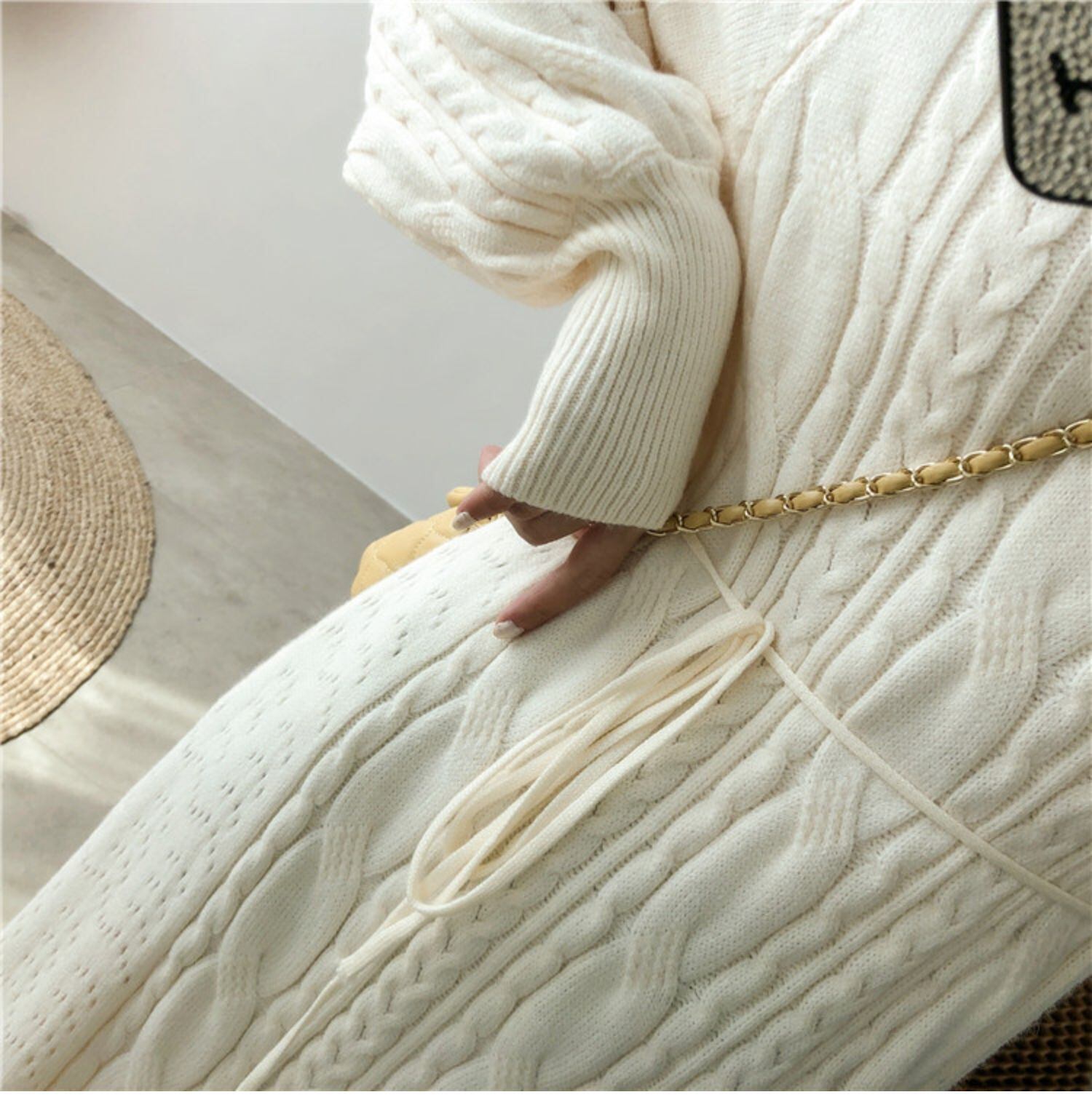 ツイストニットの膝上セータースカート女性の秋と冬の長い厚手のパッド入りベーススカート、優しい風のドレススーパーフェアリー ロング オータム 秋物 ウィンター 冬物 TB2-3 TB2-310478700039