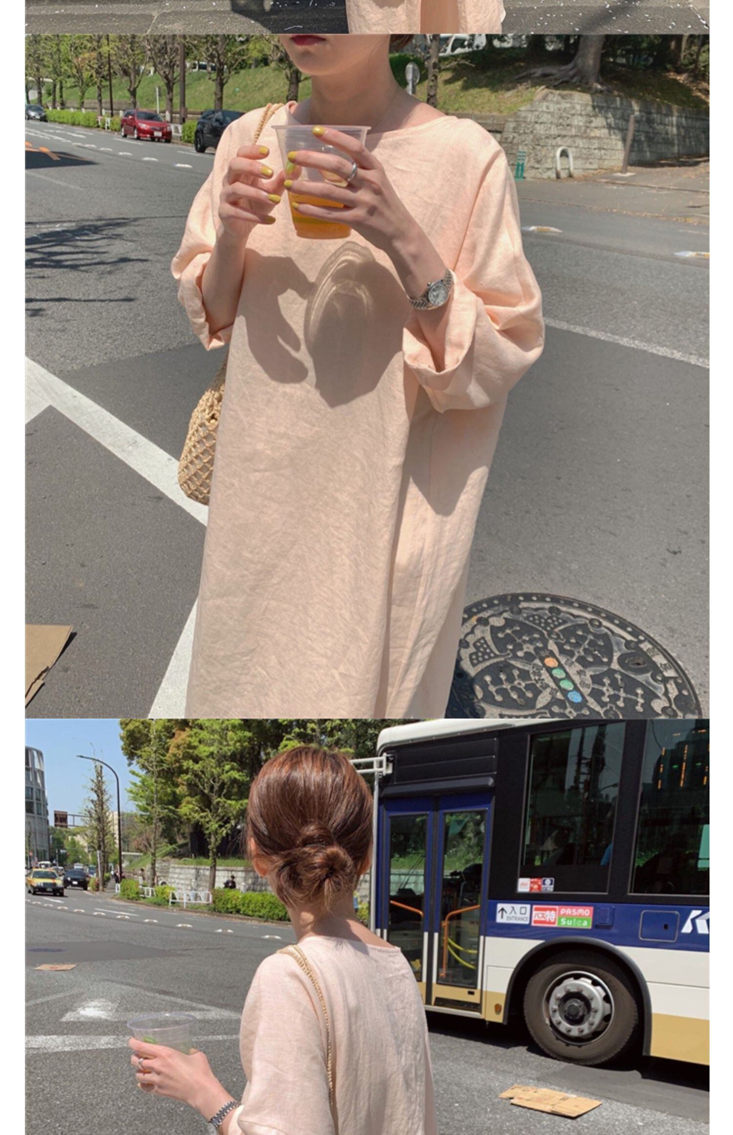 ミニマリストカジュアルウエストドローストリングのバージョンは、膝のドレスの綿とリネンの優しいパウダーの日焼け止めロングドレスの上に緩い コットン TB2-3 TB2-339751343918