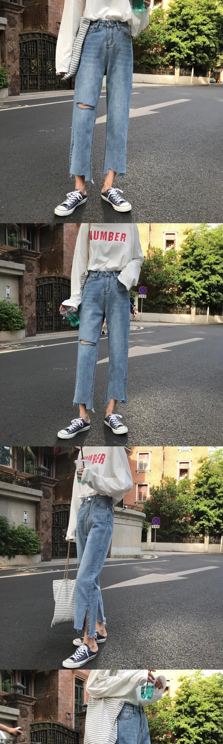 破れたハイウエストジーンズ女性2021ルーズニュースタイルスプリットストレートワイドレッグパンツwechatパンツ女性トレンド TB2-6 TB2-685515667289