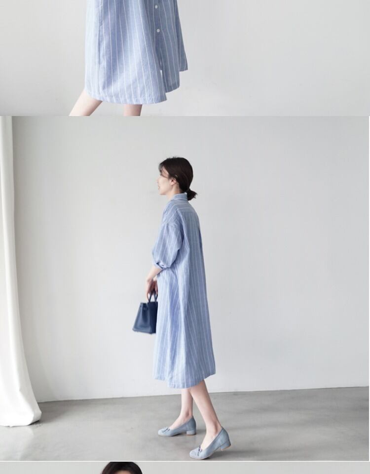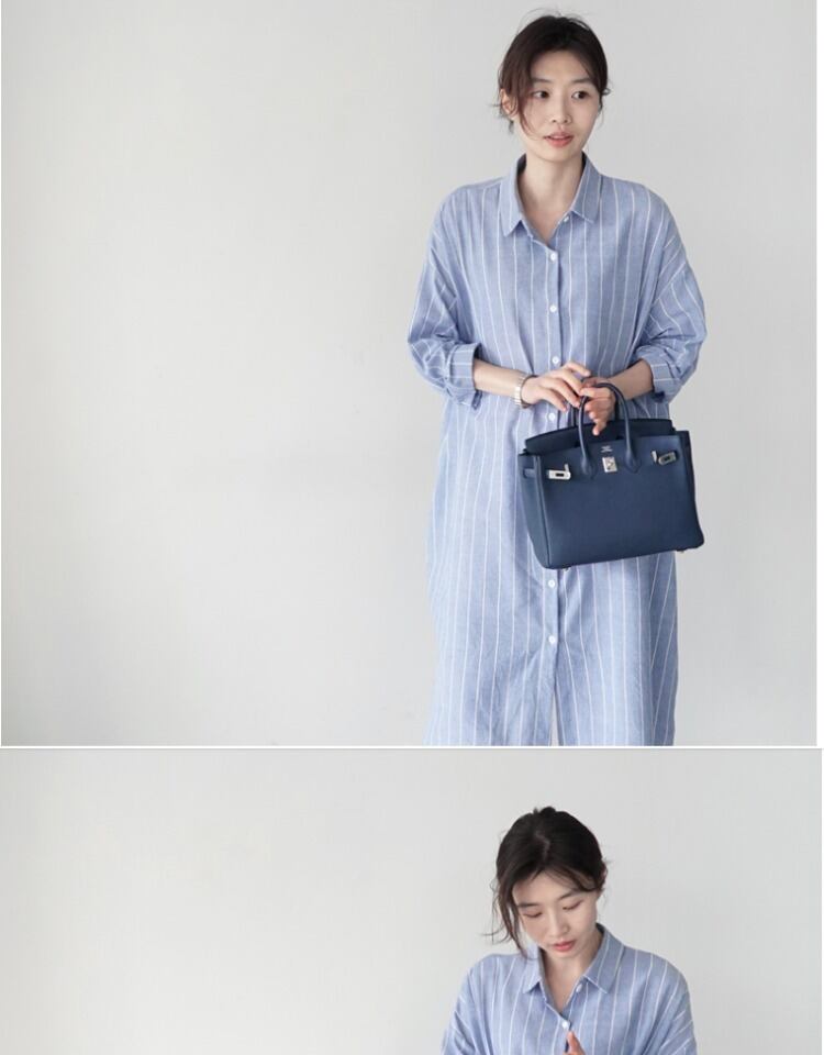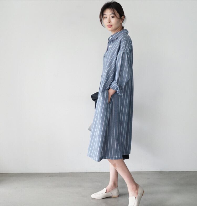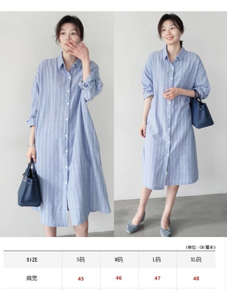 BFウィンドルーズミドル丈シックなストライプシャツ女性バージョン膝上長袖ワンピースオールマッチカジュアル薄手のジャケット ロング TB2-3 TB2-334641163648