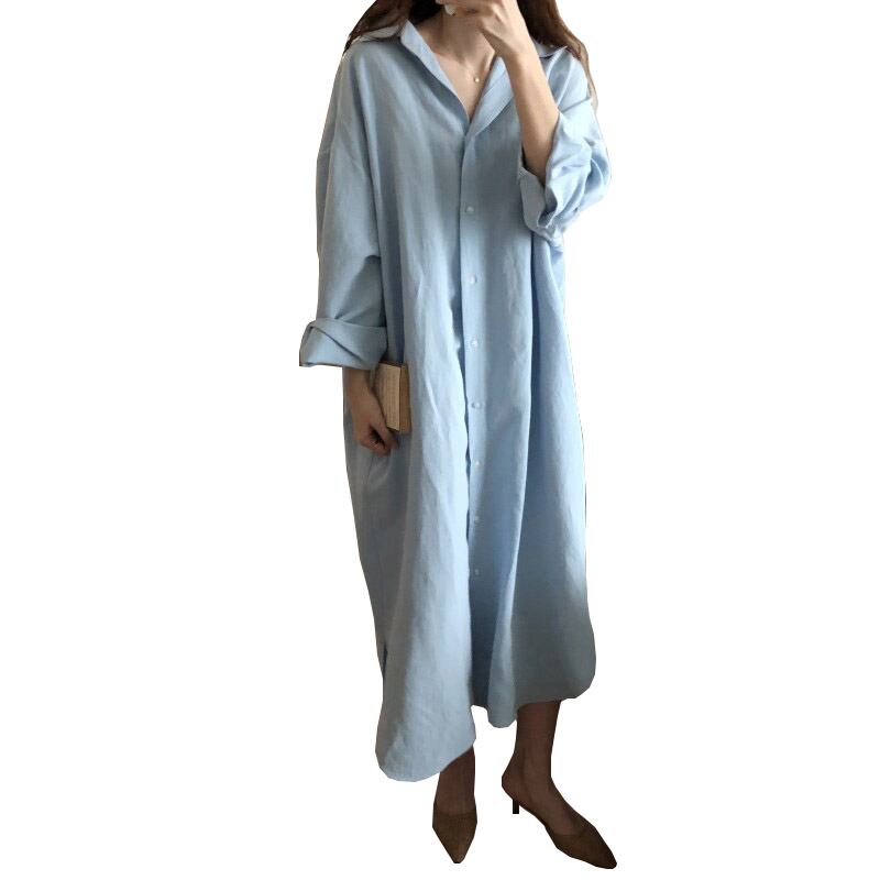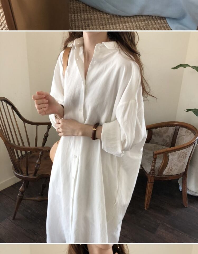 ロングシャツスカート2021膝上に新しいルーズカジュアルコットンとリネンドレス超ロングホワイトシャツ女性トレンド TB2-3 TB2-337124432820
