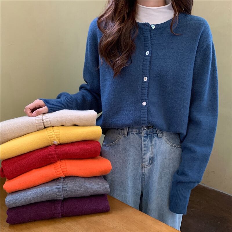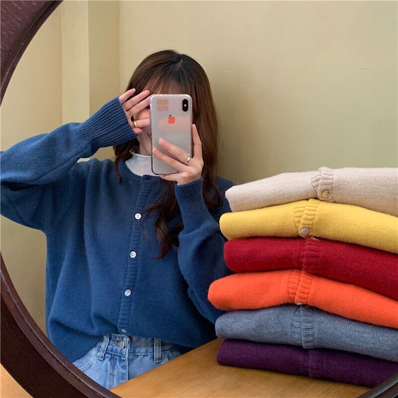 レッドカーディガンラウンドネックイヤースプリングニット長袖2021ルースウィミンセーターレイジースモールジャケット ロング 春物 Oネック TB2-6 TB2-628097766090