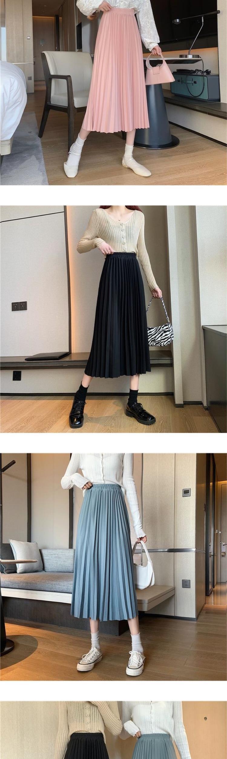 プリーツスカート、ハーフレングススカート、2021年春女性スカート、ハイウエスト、細身、ワイルド気質、スタイルミドル丈スカート ハイウェスト スプリング 春物 TB2-6 TB2-672174000795