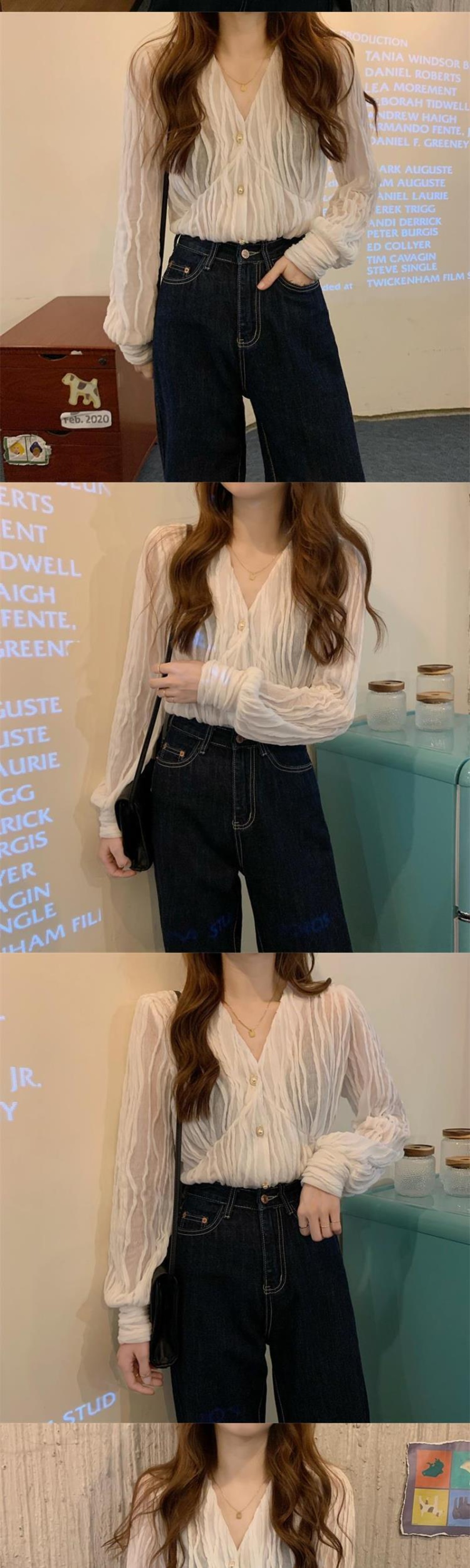ホワイトシャツレディースシャツ2021デザインセンス春秋新作ファッションVネック長袖シャツシックニッチ ロング スプリング 春物 オータム 秋物 TB2-6 TB2-655841337671