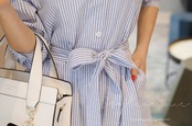 ハンファン秋の新しいストライプウエストネクタイシャツ女性BFミドル丈ルーズカジュアルコットンとリネンカラーレスシャツスカート オータム 秋物 TB2-3 TB2-396061796547