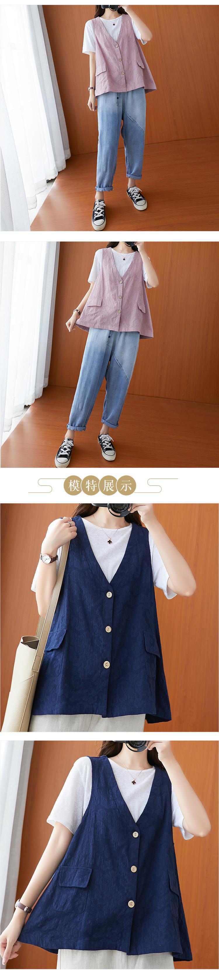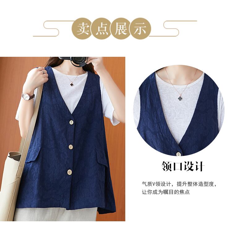 2021年夏の文学とアートレトロな綿とリネンのジャカードベストラージサイズの女性のルーズカジュアル多目的ノースリーブ薄いジャケット コットン 大きめサイズ サマー 夏物 TB2-12 TB2-1238712691368