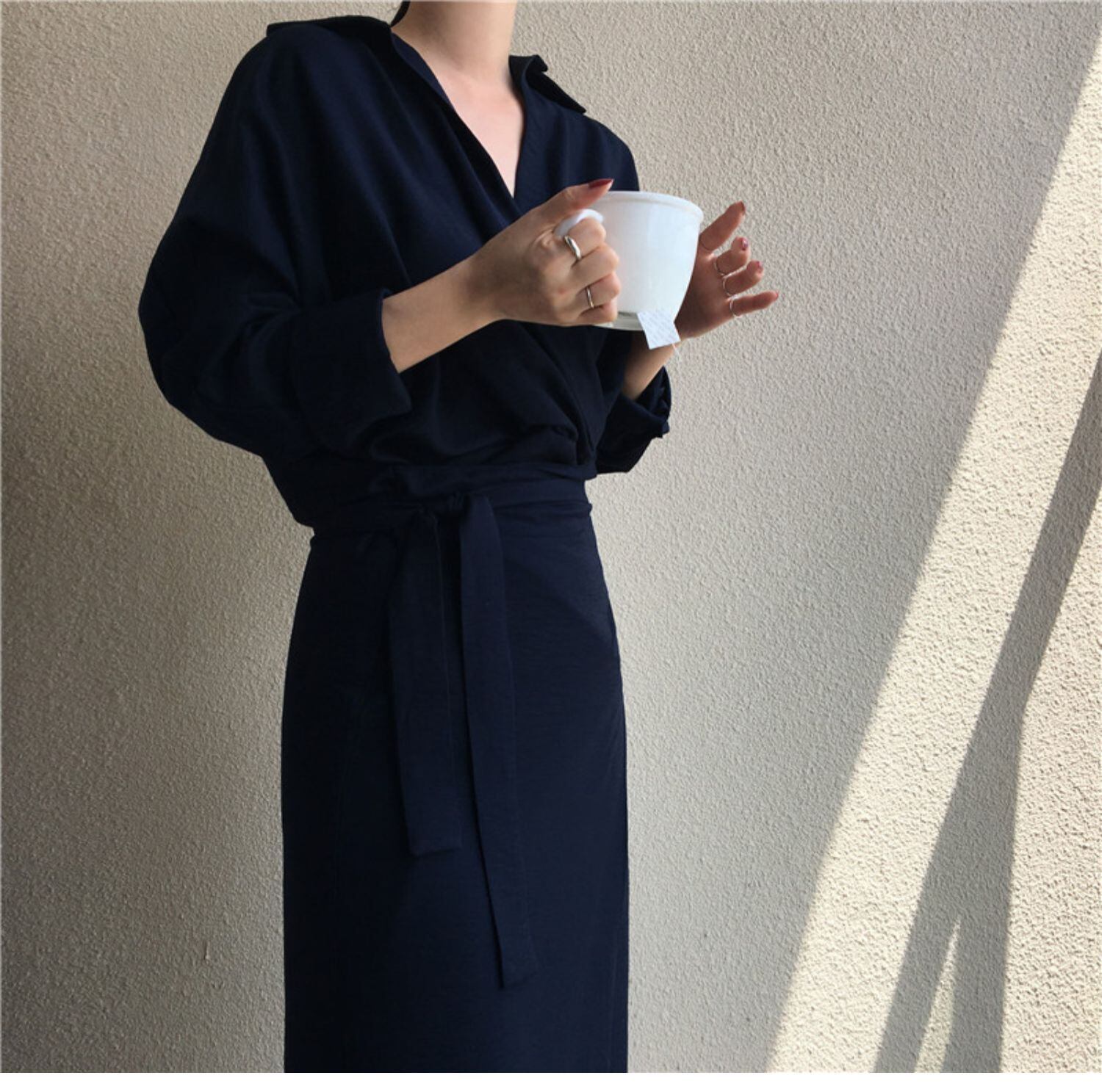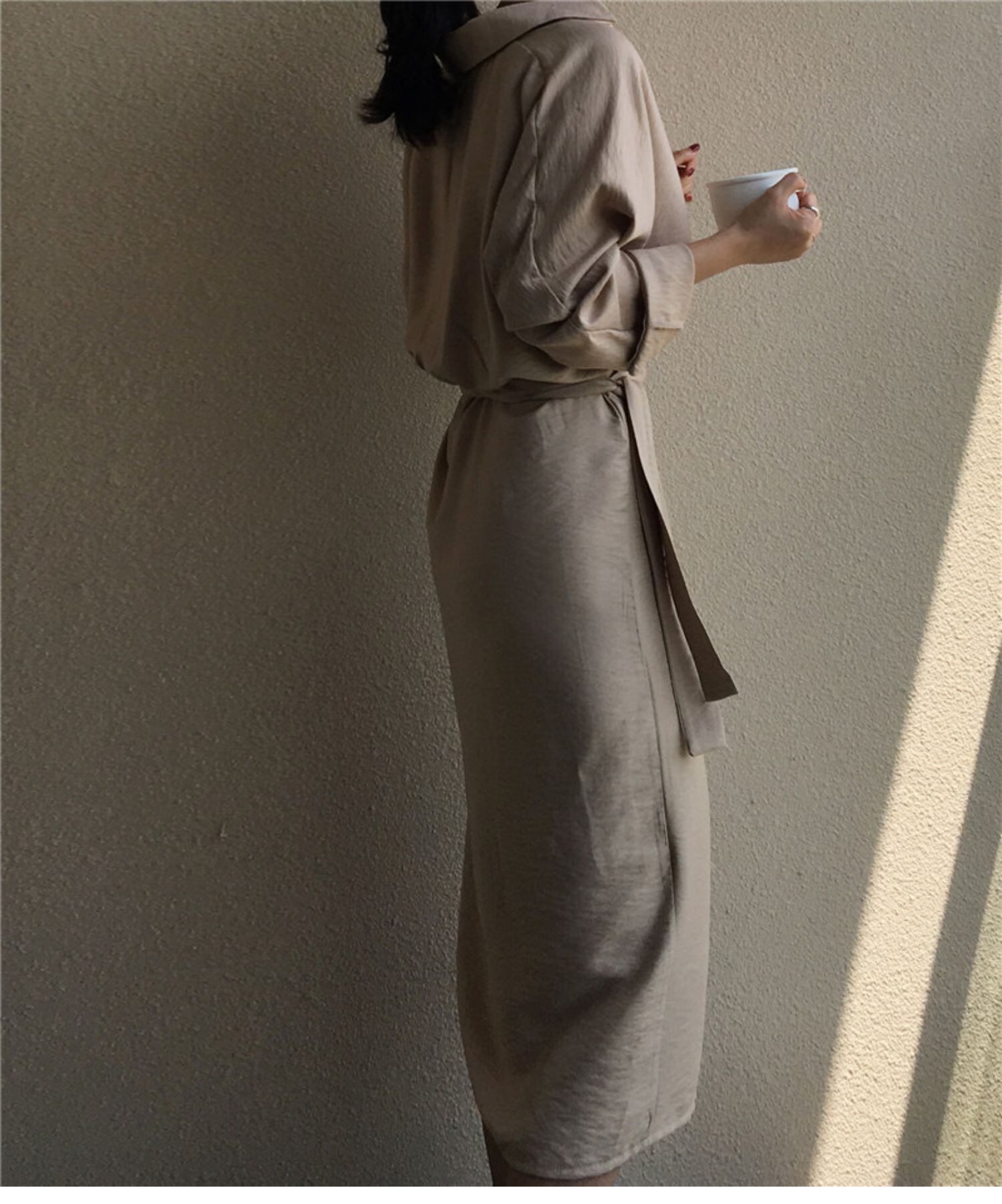 フロスティスタイルドレス秋の女性インミニマリストシャツ長袖カジュアルドレスレトロレースアップウエストミドル丈スカート ロング オータム 秋物 TB2-3 TB2-329361056927