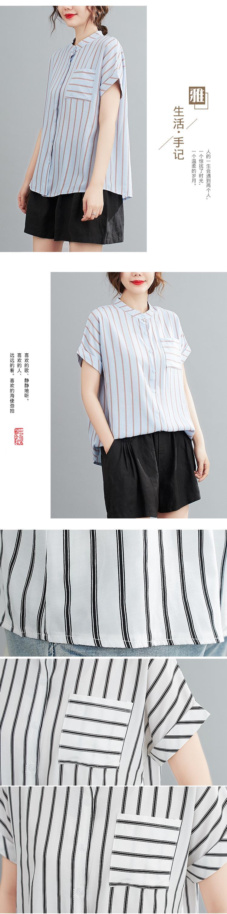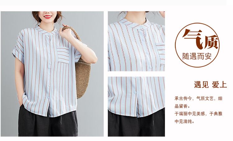 2021年夏の新しい半袖ラージサイズファットMMオールマッチルーズで薄いレトロなストライプのカーディガンジャケットの女性 大きめサイズ サマー 夏物 TB2-12 TB2-1255087538495